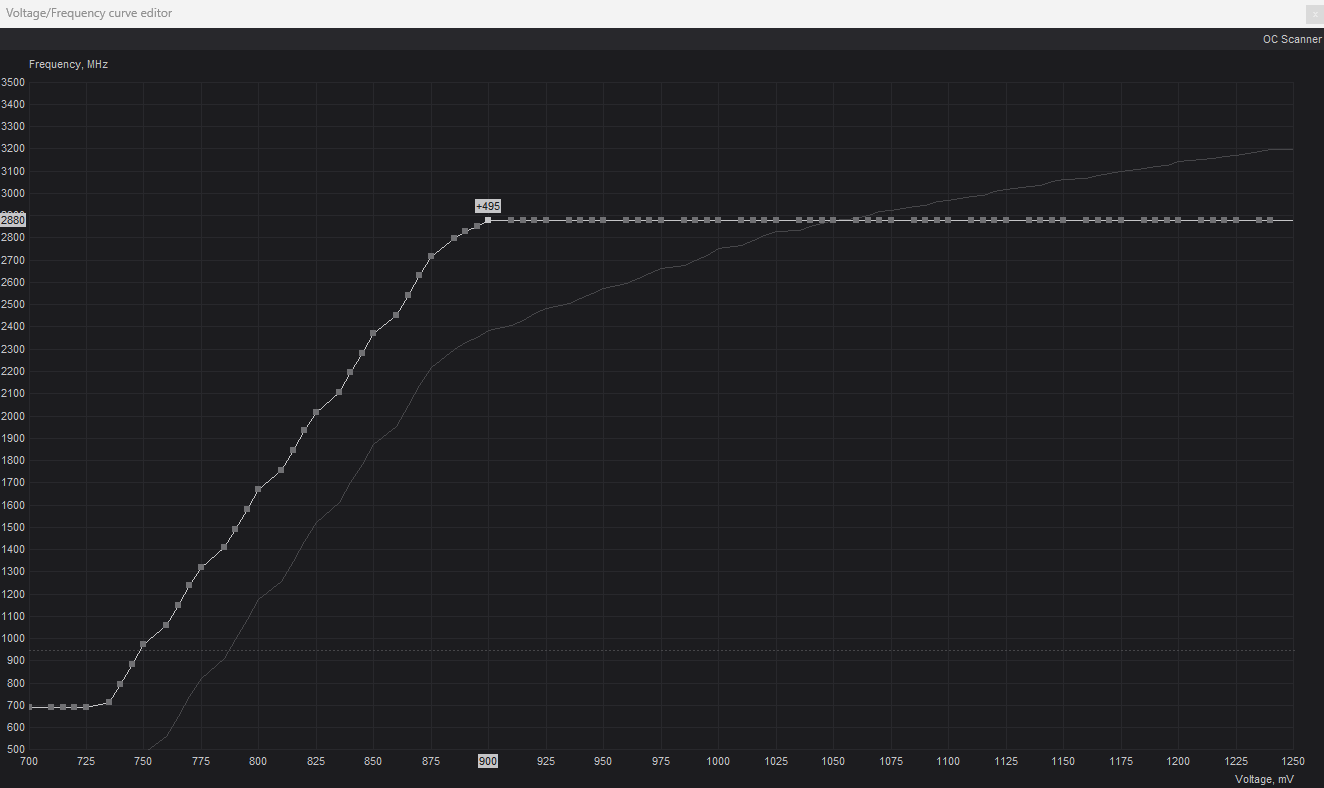 Cześć ... takie pytanko: MSI Afterburner pokazuje max GPU 2835 MHz a GPU-Z (Sensors) max 2850 MHz ( tryb okna dema HB ), natomiast w pełnej rozdzielczości 1440p mam na jednym i drugim programie po 2887 MHz dla GPU. Przyjąć wartość 2880 MHz? EDIT: przyjąłem 2880 Mhz dla 900 mV - tak na razie będę testował stabilność... -