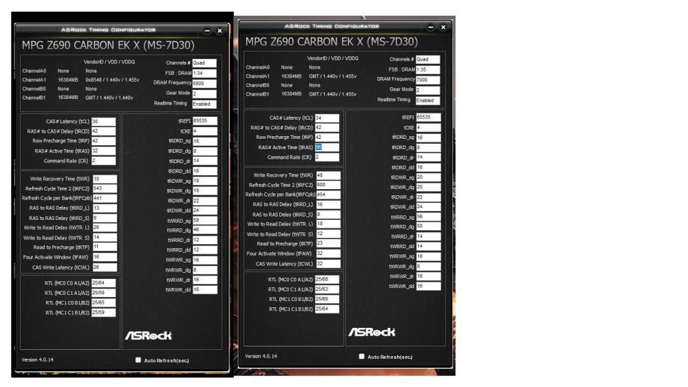 5. Ello.Mam pytanko co będzie wydajniejsze na intelu ja w sygnaturce 7000cl34-42-42-96 czy 6800 cl32-42-42-56? Oba setupy na 1.45 v