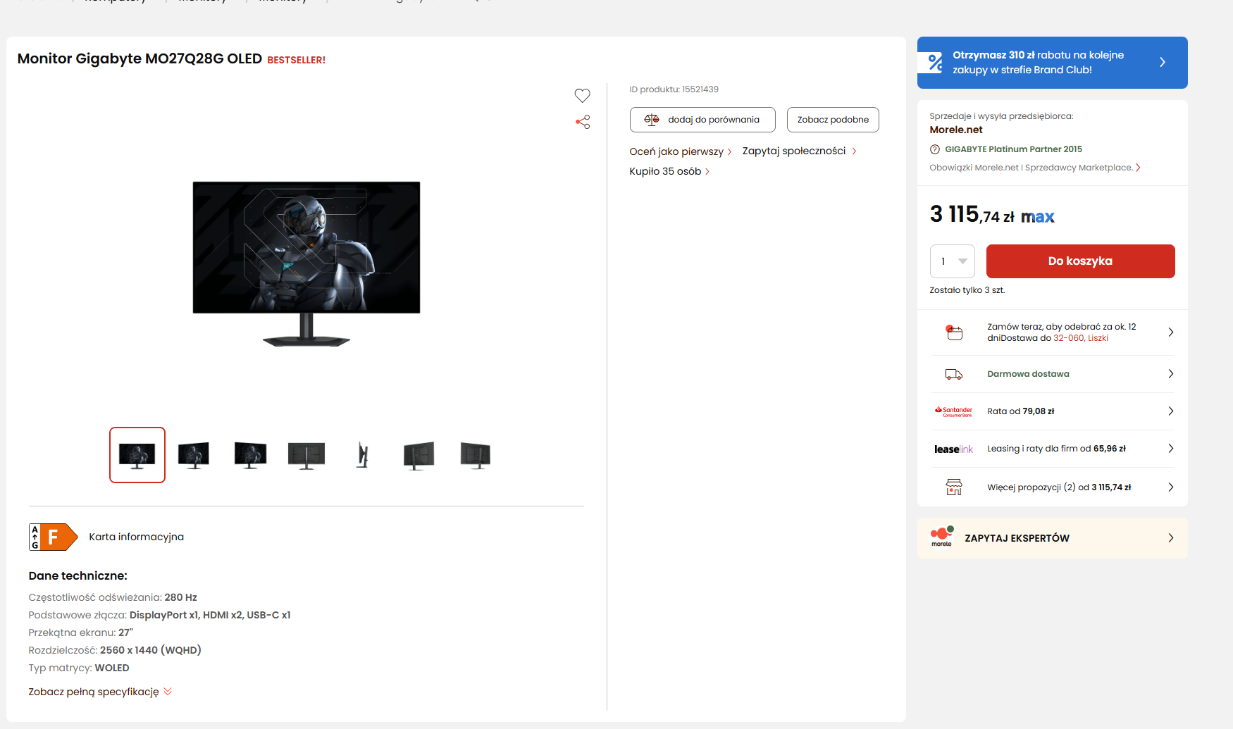 Po moich testach monitorków OLED Miałem WOLED GEN 3 na testy jak i QD-OLED GEN 3, i dopiero Tandem RGB OLED poprawił znacząco rzeczy które mi najbardziej przeszkadzały. Czcionka i jasność , pozatym na tamych meczyly mi sie oczy. Na tym jest zdecydowanie lepiej pod tym wzgledem, przynajmniej dla moich plebejskich oczu. Jak kupowałem monitorek ips 5 lat temu tez musialem przerobic kilka modeli aby trafic na taki ktory mnie nie meczy Chyba ze chodziło ci o ASUS ROG Strix XG27AQWMG. Powinien być niedługo dostępny, też jest na matrycy Tandem RGB OLED jak MO27Q28G. Niestety bedzie troszeczke drozszy. Najwazniejsze roznice miedzy nimi to powloka. Asus berdzie mial blyszczaca, a Gigabyte ma matową swoją drogą, chciałem tą powłoke bardzo pochwalić. W jasnym pokoju w dzień widze więcej na OLED niz na moim matowym IPS. Kosmos Tu masz je obok siebie