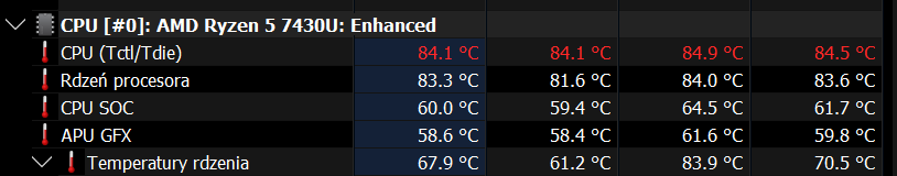 Witam mam problem z temperaturami w nowym mini pc, na pulpicie ma ponad 80stopni, może się da to zbić? Dodam, że jak grałem teraz w gothica2 z modem dx11 i union to temperatura była 75stopni i teraz jest na pulpicie 56-57... Hmm... Może aktualizacje windowsa tak mogły robić? Znowu edit: Znowu dobiły do 82 stopni loool na pulpicie