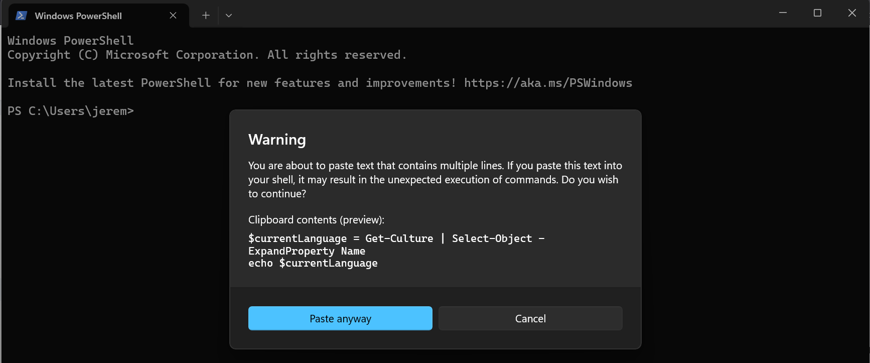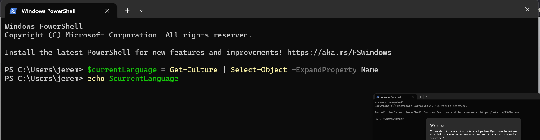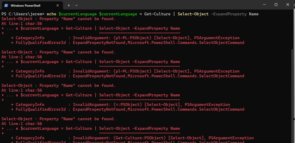 nic z tego wszedzie mam na polski, apropo tego powershella to jak pierwszy raz wkleje to takie zwykle bialo zielone wyskakuja a jak drugi raz to czerwone