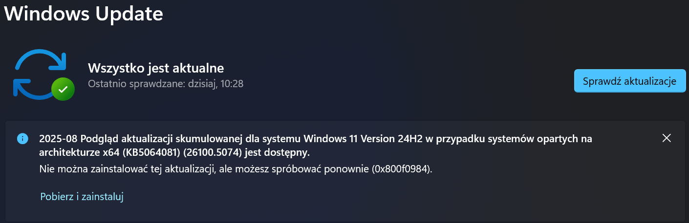 "DISM /Online /Cleanup-Image /RestoreHealth" nie pykło coś usoclient StartDownload i usoclient StartInstall jeszcze nie próbowałem, co dalej robić?