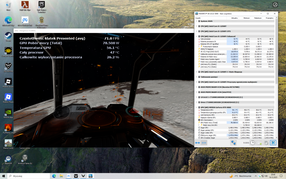Dorzucam pobór prądu z kilku gier: Wiesiek, Uber, włączona synchronizacja pionowa: Elite Dangerous tryb VR: Half Life Alyx VR (72Hz): Asgards Vrath VR: : Wkrótce podsumowanie testów i konkluzje