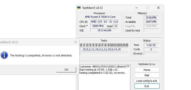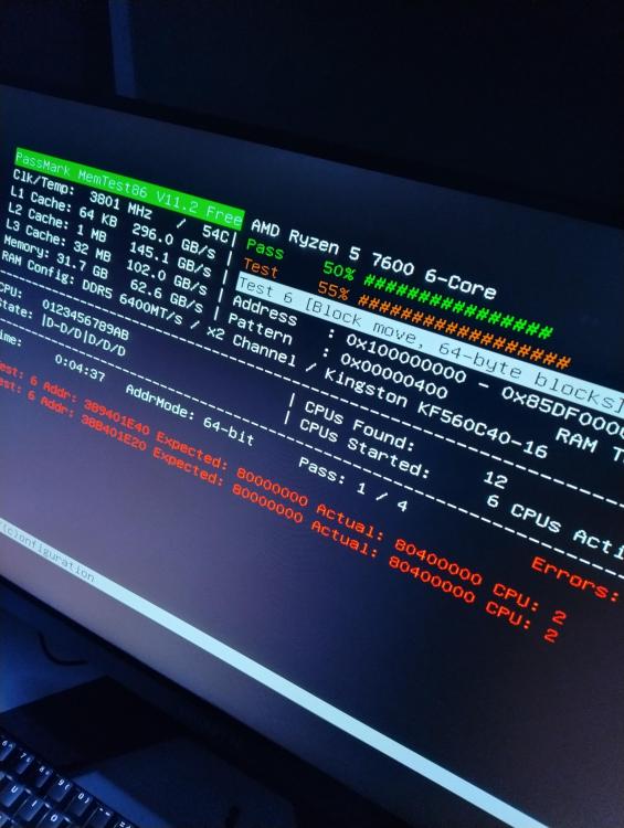 Odpaliłem mem test 86, błędów w tysiącach Na uclk 1:2 błędów nie ma, wcześniej też miałem ten problem że na 1:1 sypało błędami albo bsodem na starcie Edit: Nie ważne