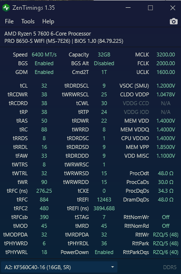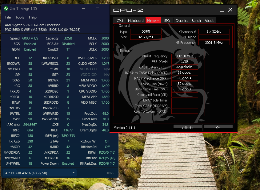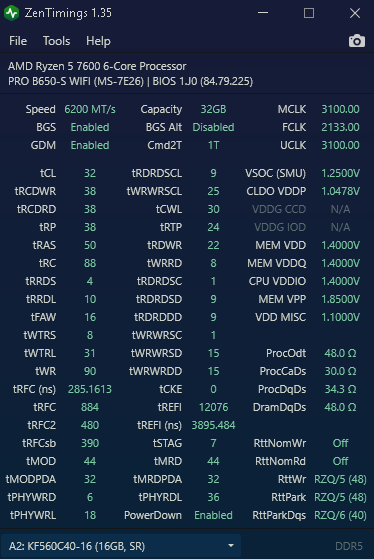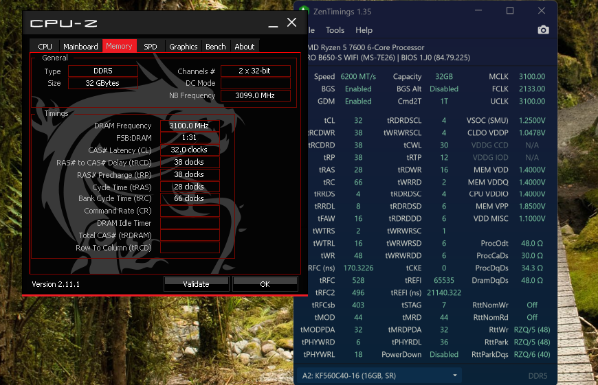 Co lepsze pod R5 7600? Lewo CL30 6000, Prawo CL32 6400 Oba z MSI Memory Try It do cl30 jedynie napięcie zmieniłem na 1.4V.