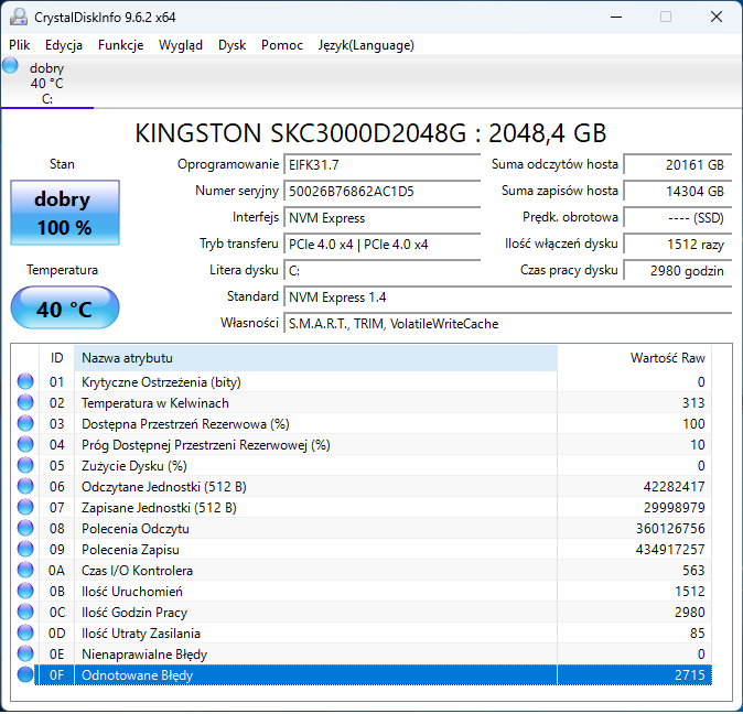 Błędy jak były tak oczywiście są. Czy coś się zmieniło w pracy i szybkości działania dysku, nie zauważyłem