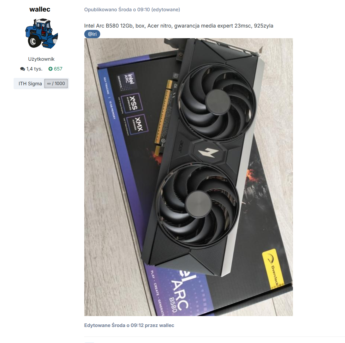 Sytuacja z dziś. Kupiłem na OLX RTX 3070 Megalodon za 900pln. Cena niska, przesyłka OLX więc wszystko prawilnie. Przyszedł kolos wielkości mojej 4080S. Z wyglądu nic nie grzebane, plomba. W ogłoszeniu 65 stopni w furmarku, karta sprawna. Włączam, działa, sterowniki, spoko. Odpalam Wieśka do testu i jak nie zacznie wyć. Ostatnie co zobaczyłem zanim wyłączyłem to 67 stopni rdzeń/105 stopni hotspot i wentyle na maksa. Wstydziłbym się wysłać/sprzedać kartę w tym stanie. Mam uwierzyć że sprzedający nie słyszał tego wycia? Oczywiście do testu wjechała Pactum4 jutro PTM i karta jest świetna, chłodna i cicha jak na 220W ale mój błąd że nie zapytałem o podesłanie screena z GPU-Z pod obciążeniem to pewnie jeszcze z pięć dyszek bym ugrał. Czuwaj! -