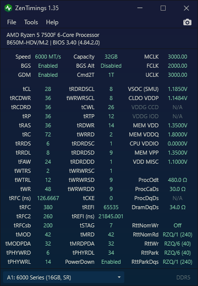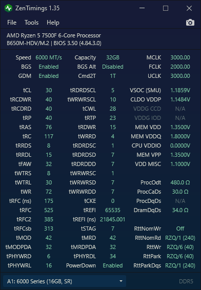 działa ten twoj profil dzieki ogolnie w benchmarkach cp2077 i farcry5 nie zmienialem zadnych ustawien, sa takie jak odrazu po zainstalowaniu gry, nie zauwazam jakis roznic jesli chodzi o wydajnosc, wszystko raczej w granicach bledu pomiarowego jeszcze pytanie odnosnie twoich timingow dostalem tutaj informacje na temat tRFC, aby wartosc byla wielokrotnoscia liczby 32-1) u cb tego nie widze, to jak to z tym jest?