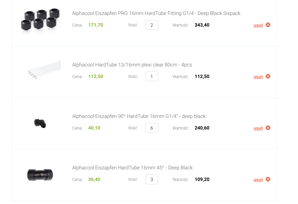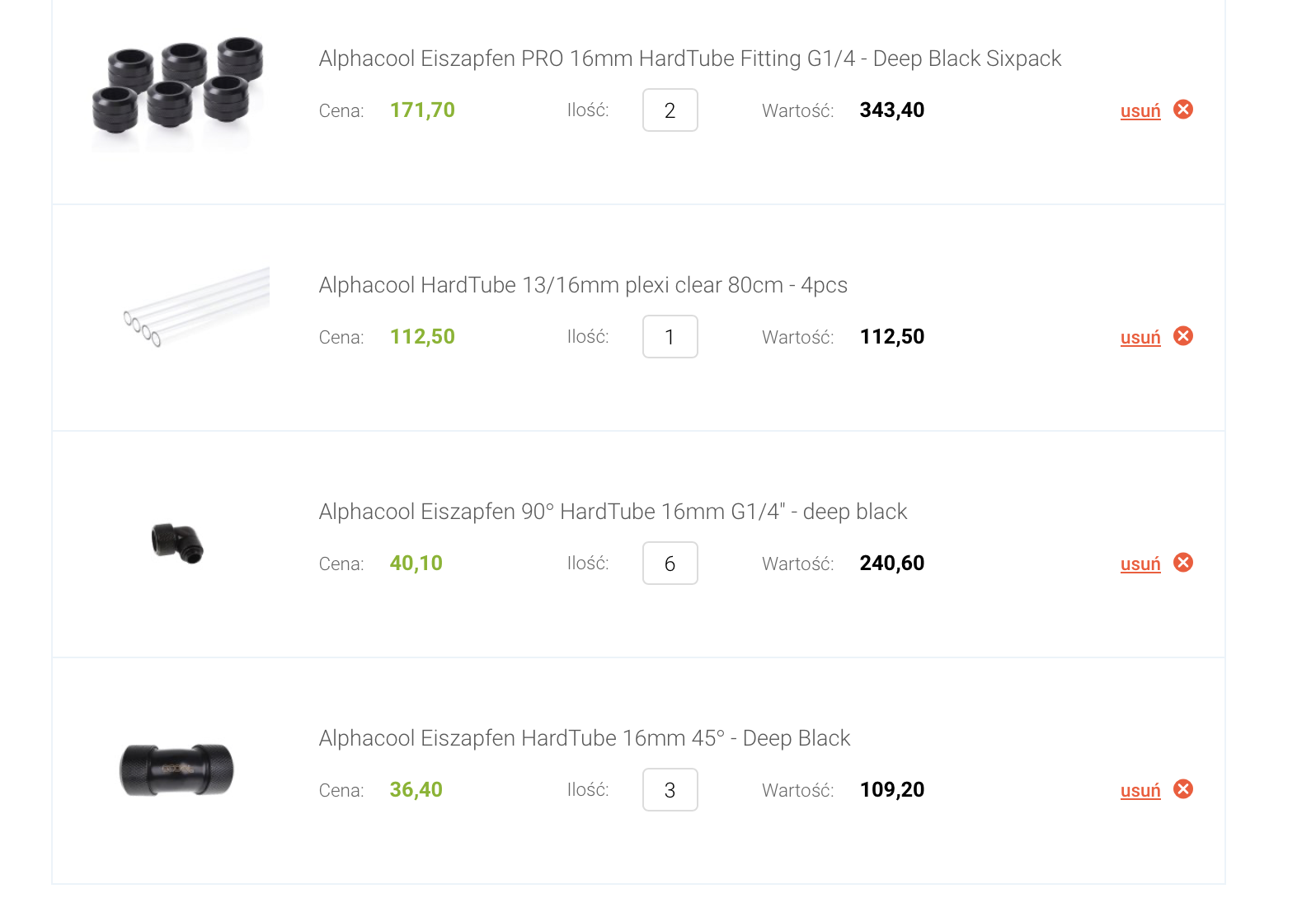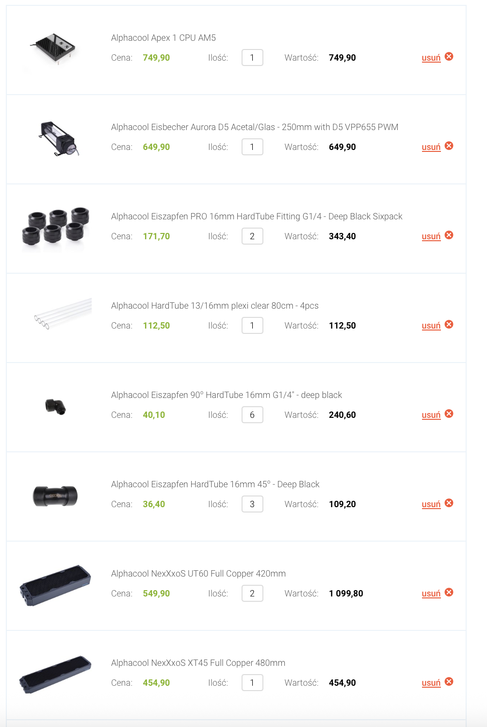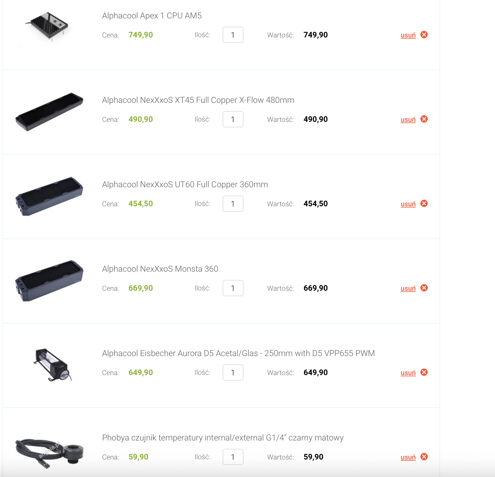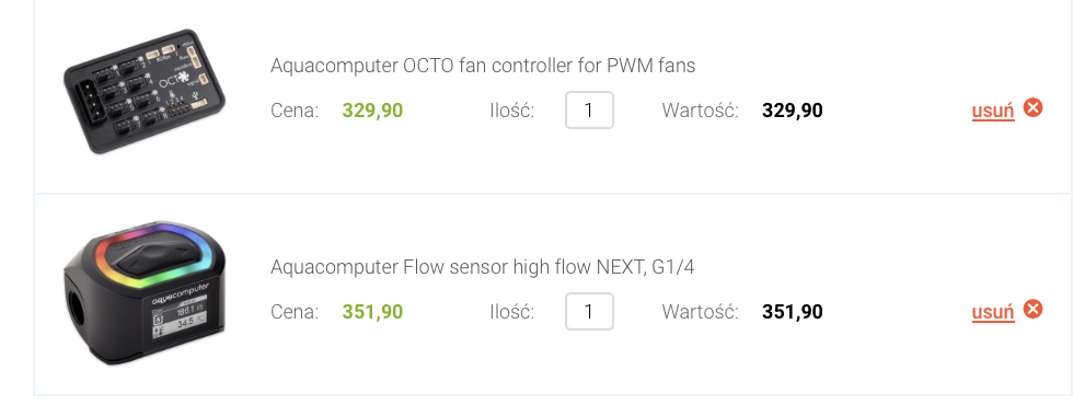 Sam koszyk zaktualizowałem również o Aquacomputer Flow sensor i Aquacomputer OCTO.