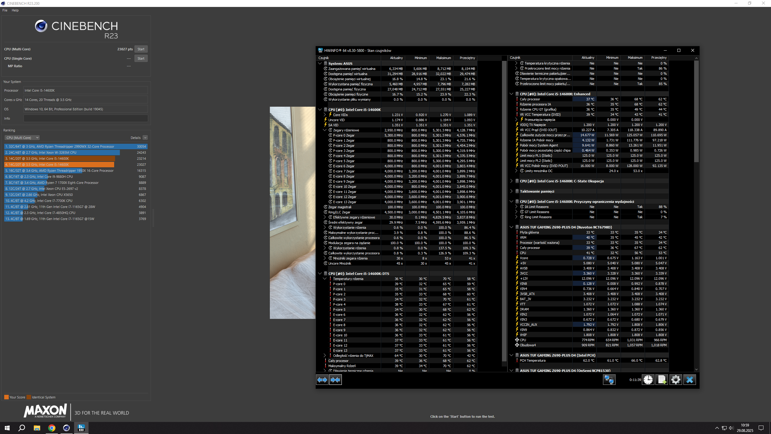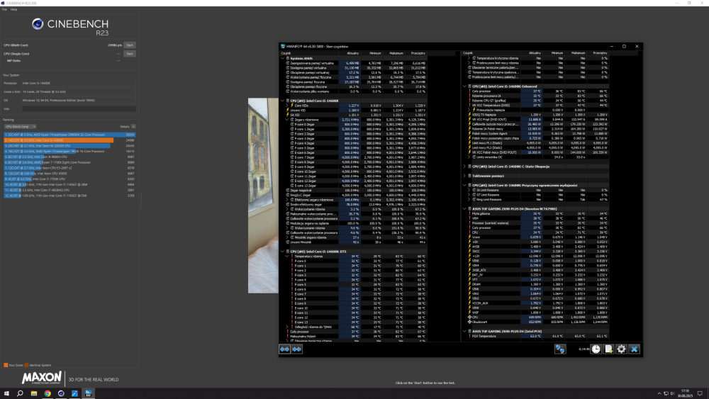 Działać będzie ale temperatury będą wysokie tak myślę. Mam ten sam model mobo ale na ddr4 z chłodzeniem Fortis5 Single fan i przeszedłem na 14600k. Ustawiłem PL1=PL2=125W, Vcore offset -0,15, z CEP na off z Load Line 3 i chodzi to jakoś. Przed tym na stocku dławienie termiczne w Cinebench'u wskakiwało po 20 sec