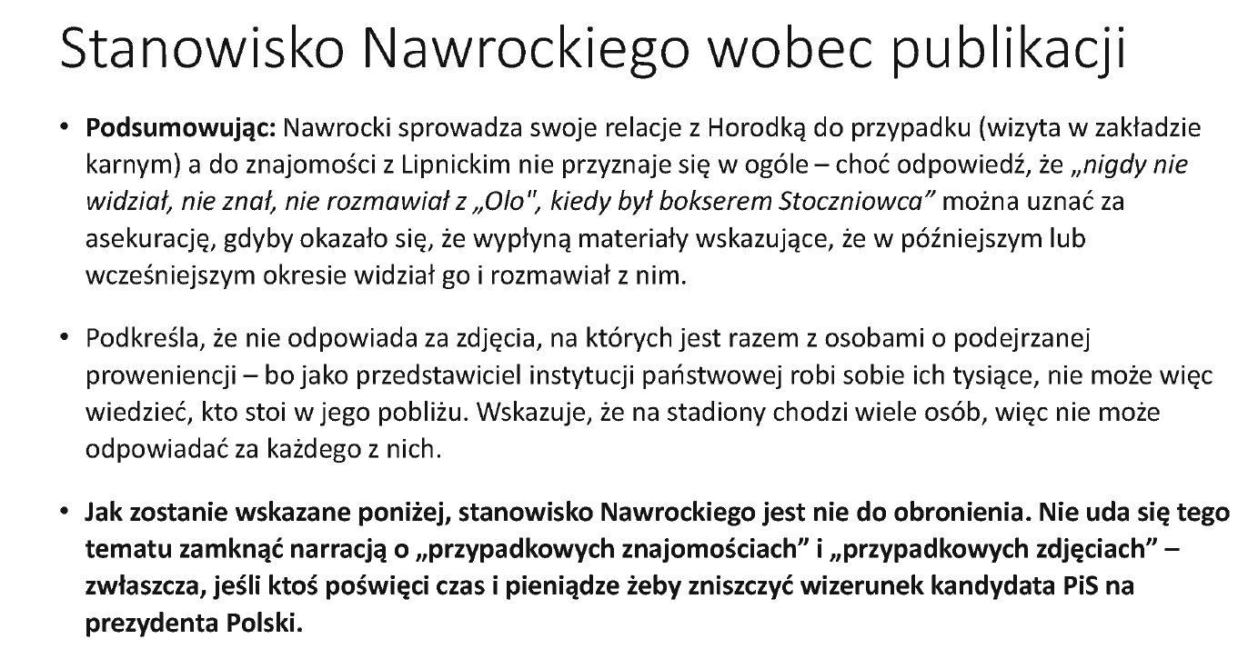Cóż, teraz jedyna nadzieją w sensowność postawy Nawrockiego to to, że to tylko skraje znajomości, z dziejów kibolstwa i boksu, gdzie próbował ich nawrócić na dobrą drogę... Co jest wątpliwe, ale nie niemożliwe.