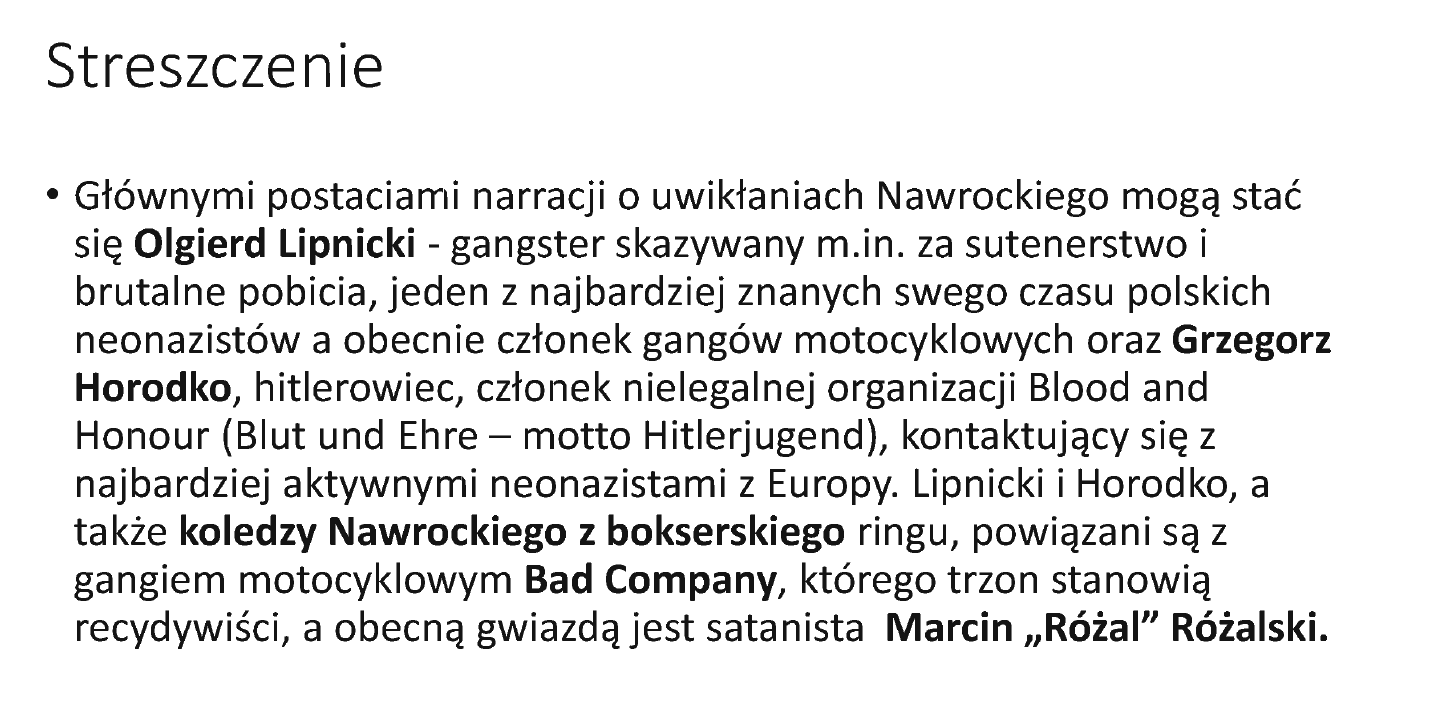 Niestety streszczenie przez AI popierdoliło parę tematów, bo czytałem te sprawy bezpośrednio i myli powiazania Horodka, które były po stornie Olgierda. Nawrocki nie sprowadzał tego do przypadku, a przynajmniej nie fakty o których czytałem - wspólne walki, narodowe zloty, IPN...