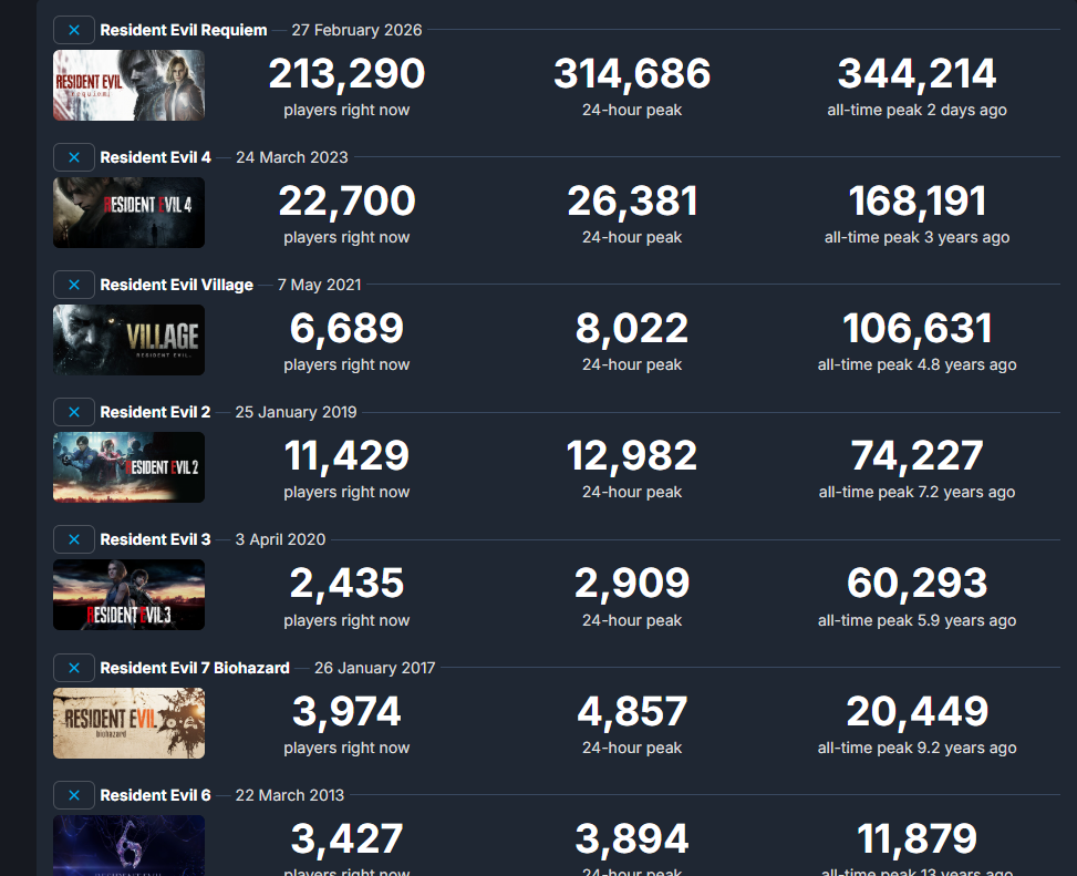 hej, pytam na poważnie, wytłumaczy mi ktoś skąd taka tendencja? gra aż tak bardoz zodbywa popularność, czy po prostu rodzi się wiecej graczy? w sumie od premiery RE7 minęło 9 lat, więc może to być mix tych wszystkich czynników.