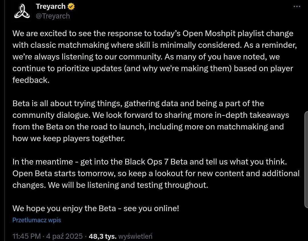 #BF6 nadchodzi, to oni się obudzili i twierdzą, że teraz już słuchają graczy, dlatego w #BO7 osłabili SBMM na jednej playliście i czekają na opinie społeczności 😂