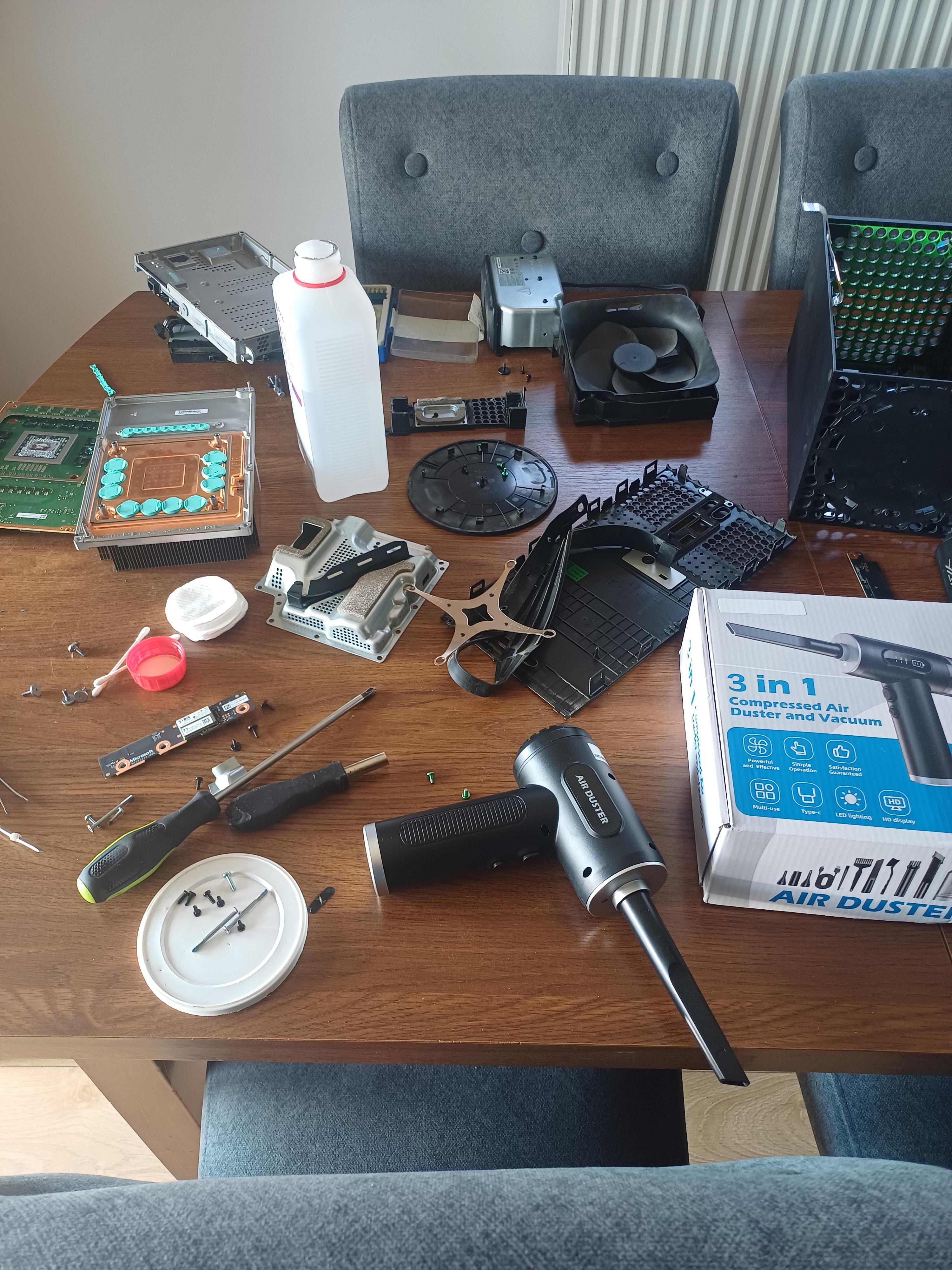 @Godlike wrzucę pate fotek przed i po. Nie ma tego dużo bo spoczatku miałem wiecej czasu bo młodemu dałem robotę i moglem sobie spokojnie ogarniać temat a później już stał nade mną jak "inwestor" i czekał kiedy stary mu ja złoży bo chce grać 😂 Efekt wyszedł lepiej niz sie spodziewałem, zgrupsza wydmuchane i dmuchawa naprawdę super i jestem bardzo z niej zadowolony. Resztę później też przeżywałem ipa. Co do pasty to kamień choć xbox od lutego po gwarancji i odrazu założyłem ptm 7950. Prędzej chodziła jak suszarka a teraz ledwo ją słychać i co najważniejsze że działa po złożeniu. Dałem ptm bo nie chce sie juz z nią bawić bo jest więcej rozkręcania niż w serii S którą też mu prędzej ogarniałem
