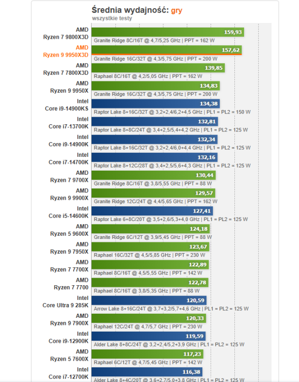 tomcug 2 440 Opublikowano 16 Sierpnia Opublikowano 16 Sierpnia Przy obecnych cenach, pod gry lepiej w AMD. Ryzen 9600X kosztuje teraz 8 stówek, a to bardzo dobry CPU do gier. Teraz, marcin_o26 napisał(a): dobra Panowie, dzięki za pomoc, na ten czas zdecyduje się na: 14600k za 800 zł B760 Pro RS za 539 zł PATRIOT Viper Venom 32GB 7000MHz za 452 zł Jak Ci nie zależy na wymianie procesora za generację/dwie, to ok. Jak Ci zależy, to lepiej 9600X + jakieś tańsze mobo na AM5. Chociaż patrząc, że zmieniasz z 9900K, to pewnie szybko nie zmienisz ponownie. 2