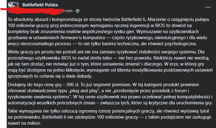 A co do Secure Boot. Twórca gry wam mówi jakie macie mieć ustawienia systemu i jakie systemy wolno wam używać, a Wy jeszcze graczy wyśmiewacie, że mają czelność wyrażać dezaprobatę