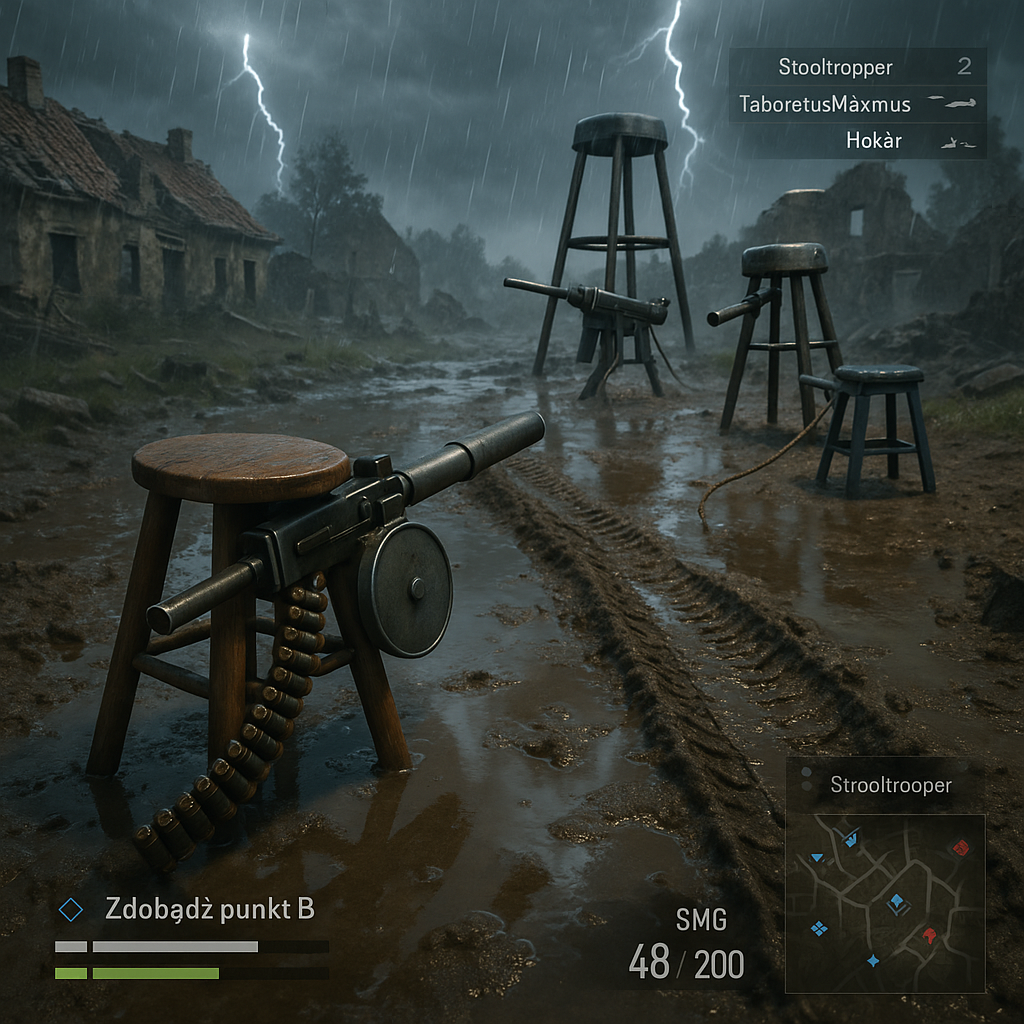 Nawet te taborety na drugim wyglądają trochę y... nazistowsko (wyglądają jak zołnierze Wermahtu). Do tego nicki AI samo dodało. Ja tylko napisałem, że ma zrobić obrazek ala Battlefield, ale zamiast graczy taborety. Wszystko inne AI zrobiło samo