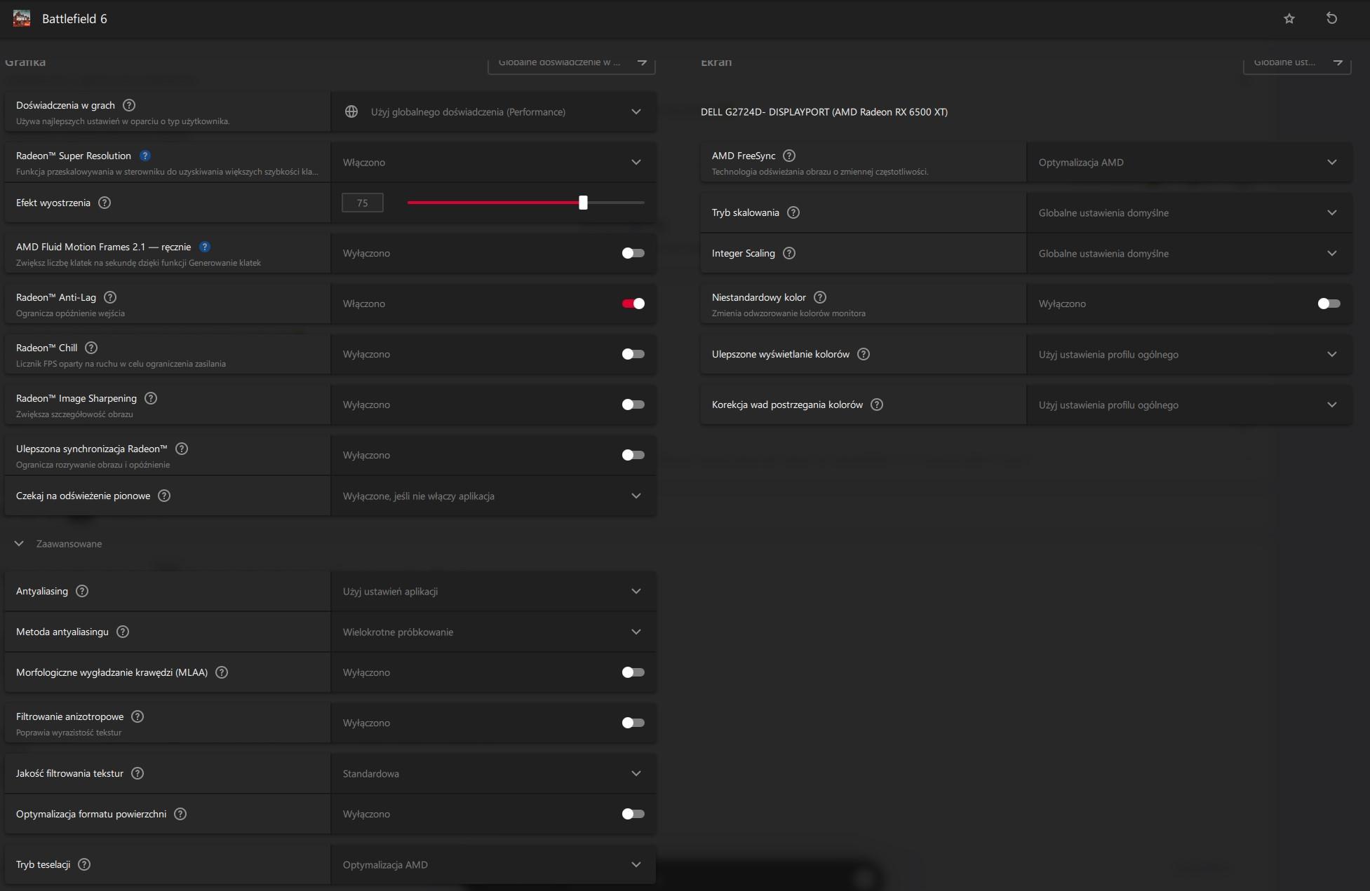 w AMD Software wrzucam screen w załączeniu bo jest pierdyliard ustawień.