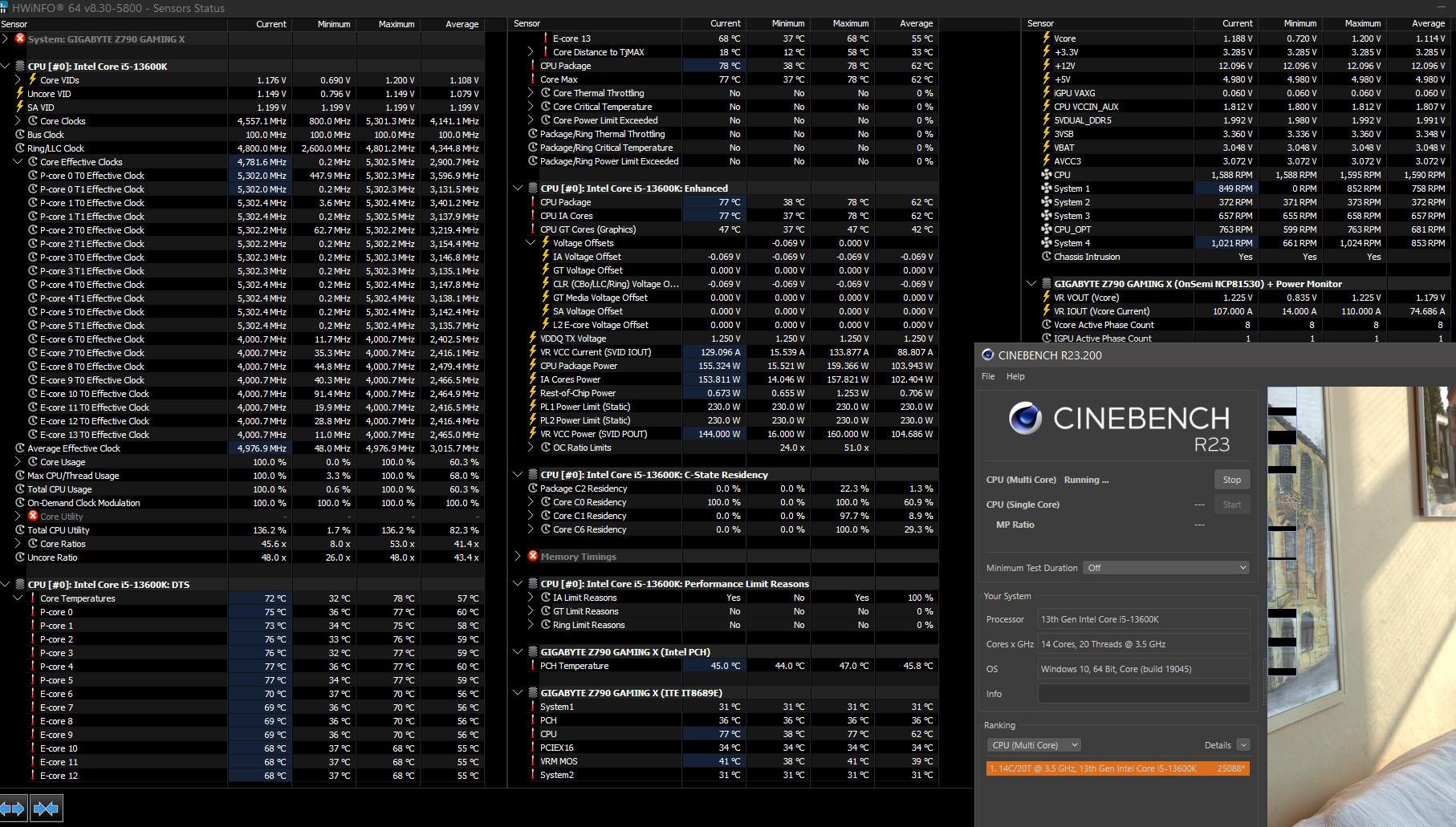 ITprospector 11 Opublikowano 9 Października Autor Opublikowano 9 Października @ITHardwareGPT „robimy” A z mojej strony obecny "średnio - zaawansowany" własny rev.04. setup biosu F13. wiem nie jest idealny, ale spokojnie biega pod gry i codzienne użytkowanie, więc może się przyda komuś przynajmniej częściowo jakaś ściągawka. Potem planuje jeszcze optymalizację pod 5400/4300, jak już zauważyłem, to też jest taki sweet spot u mnie. Gigabyte Z790 Gaming X, bios F13, 13600K_OC_Pcore =5300 MHz/Ecore =4000 MHz, czyli 14600K Noctua U12A z jednym Fan !!! gdzie optymalizacja krzywej w bios jest na cisze, 2x16GB DDR5 6000_OC_6400, Hynix M-die (OC_timings), DDR5 konfig bios timingi - POMIJAM CELOWO NA RAZIE, a skupiam się wyłącznie na setup płyta vs CPU. obecnie Test Cinebench_R23 MT = 25088 pkt. na 13600K@5300/4000. Bios settings: Tweaker: Intel Defauld Settings = Disabled, Gigabyte PerfDrive = Optimization, CPU Upgrade = Default, CPU Base Clock = 100.00 MHz, Enhanced Multi-Core Performance = Auto, Performance CPU Clock Ratio = Auto, Efficiency CPU Clock Ratio = 40, Max ring Ratio = 48, Min Ring Ratio = Auto, IGP Ratio = Auto, CPU/PCH Voltage Control: Vcore voltage mode = Adaptive Vcore, VF Offset Mode = Legacy, Internal CPU Vcore = Normal, Internal CPU Vcore offset = -0.070V BCLK Adaptive Voltage = Auto, CPU Graphics Voltage (VAXG) = Auto, CPU RING Voltage = Normal, CPU RING Voltage offset = -0.070V, Internal VCCSA = 1.200V, DRAM Voltage Control: VDDQCPU = 1.250V, VDD2CPU = 1.250V, DDR5 Voltage Control VDD Voltage = 1.380V, VDDQ Voltage = 1.380V, Advanced CPU Settings: PVD Ratio Threshold Override = Auto, CPU temp protection = 90 °C, Hyper-Threading Technology = Enabled, Intel speed Shift Technology = Enabled, Cpu Thermal Monitor = Enabled, Ring to Core offset (Downa Bin) = Auto, CPU EIST Function = Enabled, Race To Halt (RTH) = Enabled, Energy Efficient Turbo = Enabled, Intel Turbo Boost Technology = Enabled, CPU Flex Ratio Override = Disabled, Frequency TVB, Enhanced TVB, Voltage TVB = Disabled, IA CEP (Current Excursion Protection) = Auto = Disabled, GT CEP (Current Excursion Protection) = Auto = Disabled, FII (FLL) OC Mode = Disabled, Legacy Game Compatibility Mode = Disabled, Intel (VMX) Virtualization Technology = Disabled (lub Auto jak kto woli) Core VR Fast Vmode = Auto, Under Voltage Protetion = Disabled, Intel Dynamic Tunning Technology = Disabled, AVX Settings = User Defined, AVX = Enabled, AVX Offset = 3, AVX Voltage Guardband Scale Factor = Auto, Active Turbo Ratios = Manual, P-Core (all 6) Turbo Ratio = 53, E-Core (all 8) Turbo E-Core Ratio = 40, C-state Control = Enabled, CPU Enhanced Halt (C1E) = Enabled, C6/C7 State Support = Enabled, C8 State Support = Disabled, C10 State Support = Disabled, Package C-state Limit = C6, Turbo Power Limits: Package Power Limit PL1 = 230, Package Power Limit PL2 = 230, Core Current Limit (Amps) = 250 A, Platform Power Limit 1,2 (Watts) = Auto, (***to do ustalenia jeszcze***) Platform Power Limit 1,2 Time = Auto, (***to do ustalenia jeszcze***) Advanced Voltage Settings / CPU/VRM Settings: CPU Vcore Loadline Calibration (LLC) = High, CPU Vcore Current Protection - Auto, Internal VR Control: IA VR Config Enable = Enabled, IA AC Loadline (ACLL) = 20, IA DC Loadline (DCLL) = 38, IA PS Current Threshold 1 = 0, (***to do ustalenia jeszcze***) IA PS Current Threshold 2 = 0, (***to do ustalenia jeszcze***) IA PS Current Threshold 3 = 0, (***to do ustalenia jeszcze***) IA PS3 Enabled Disabled, (***to do ustalenia jeszcze***) IA PS4 Enabled = Disabled, (***to do ustalenia jeszcze***) IA VR Current Limit = 1280 = 320 Amper, IA VR Voltage limit = 1350 = 1.350 V, IA TDC Enable = Enabled, IA TDC Current Limit = value 2000 = 250 Amper, IA TDC Time Windows Limit = 500 ms, IA TDC Lock - Enabled, IRMS = Disabled, Napięcia, ampery, temperatury z powyższego setup, to daje zrzut Cinebencha pod sam koniec testu w załączeniu. W grach dotychczas kilku sprawdzonych, też ten setup u mnie jest ok.