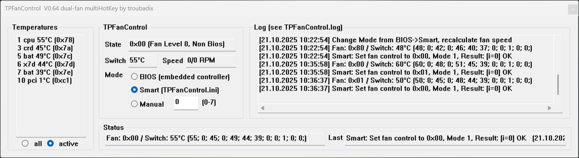 karnasw 1 Opublikowano 21 Października Autor Opublikowano 21 Października (edytowane) Jakby ktoś szukał w przyszłości obejścia problemu. TPFanControl działa. Trzeba zainstalować najpierw wersję 0.63 potem wersję DualFan: https://thinkwiki.de/TPFanControl Ktoś tam zgłaszał, że przez ten program potrafi mu się komputer wyłączyć w czasie rozmowy teams. Muszę to przetestować. Teraz mam ciszę w czasie korzystania z internetu i pracy biurowej. Notebook ma 52-55 stopni bez używania wentylatora. Nie rozumiem więc czemu Lenovo tak beznadziejnie ustawia te krzywe. Edytowane 21 Października przez karnasw 1