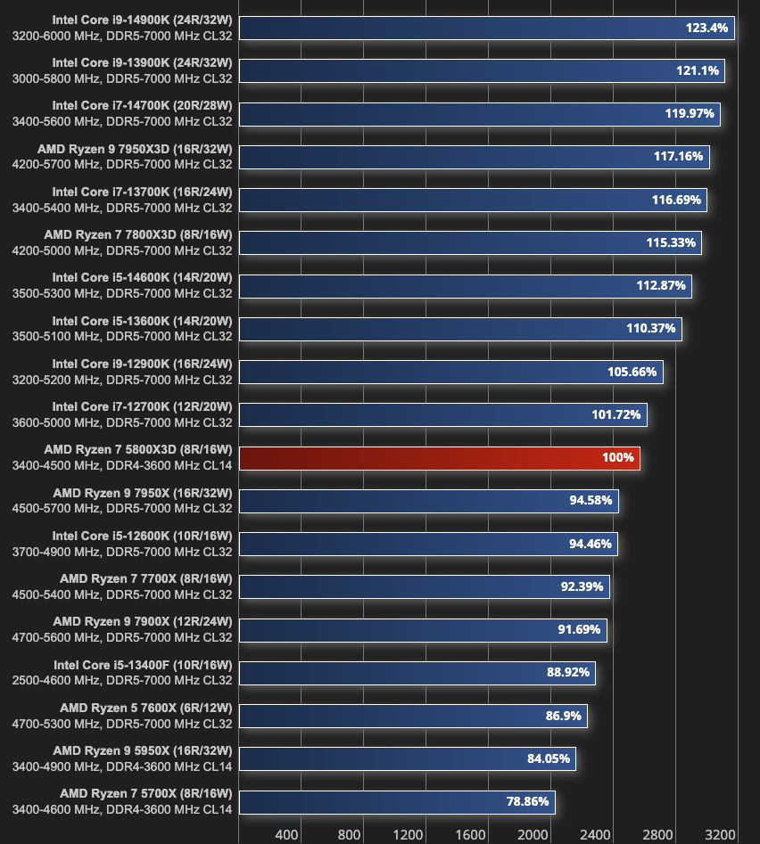 Dużo zależy od rozdzielczości i od gry. W takiej Forzie horizon 5 różnica jest znaczna a znajdziesz pojedyncze przypadki gdzie 5700X3D wygrywa z 9700X.