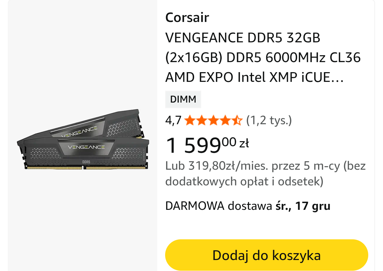 Wszystkich czekających na RAMy z Amazona z tego miejsca serdzecznie przepraszam. Fakt, że ja zamówiłem komplet 2x16GB DDR5 zmniejsza szasne o 99%.
