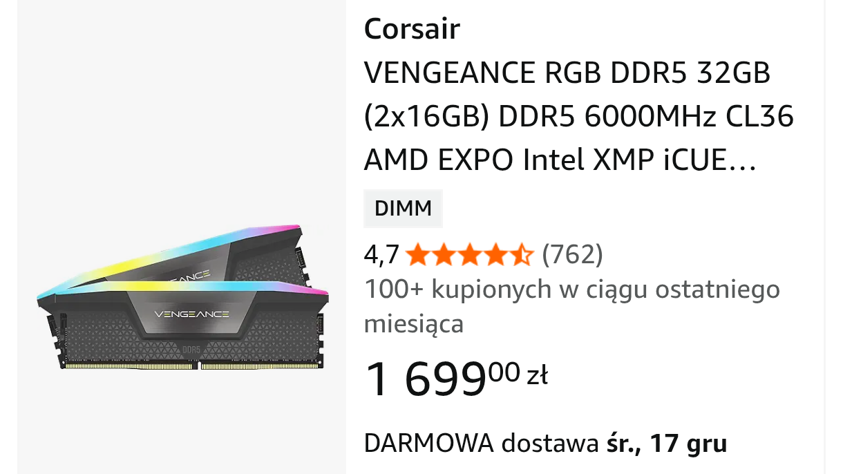 1900 zł patior viper cl30 6000 mhz teraz stoją a w październiku 400 zł za 32 gb dałem :O