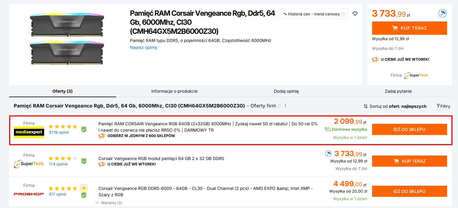 Natomiast za 1289 zł są dostępne Goodramy 32GB, więc jak kto nie potrzebuje 64GB to nie ma sensu dopłacać.