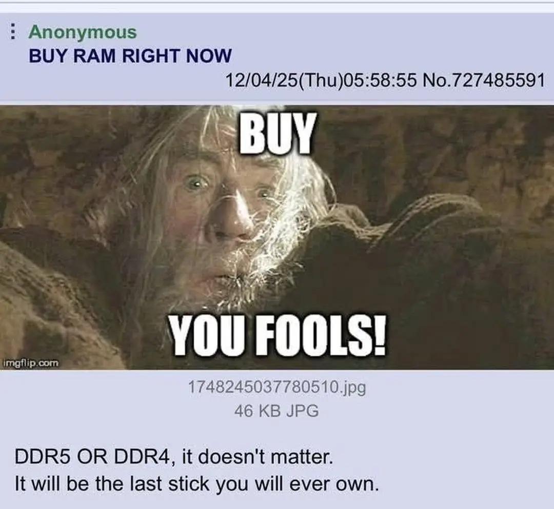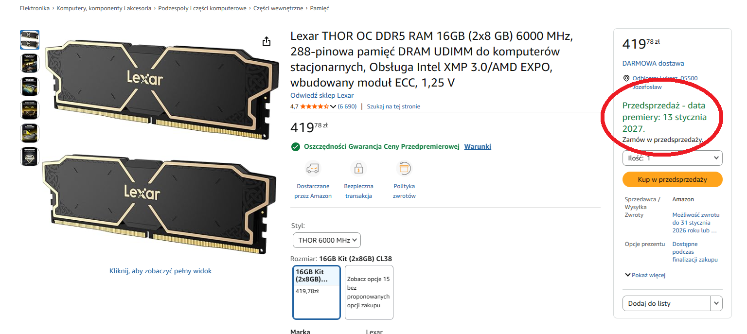 W stanach chyba inaczej podają daty. Jak napisał to w kwietniu to dużo przed czasem. Jak 4 grudnia to kolejny naganiacz. Takiej tragedii nie może być a jak nawet to pytanie komu ile tej pamięci potrzeba. Skończyło się w dystrybucji oczekiwanie dostaw i wymyślają ceny... Będzie cały rynek pc w stagnacji i może jakiś odważny twórca indyków w produkcji tanich się porywał na większe wymagania. Kto kupił to ma a czy poczekasz do nadchodzących wakacji czy następnych to już twoja broszka. Potem spadek 4 czy 6 razy cię nauczy.