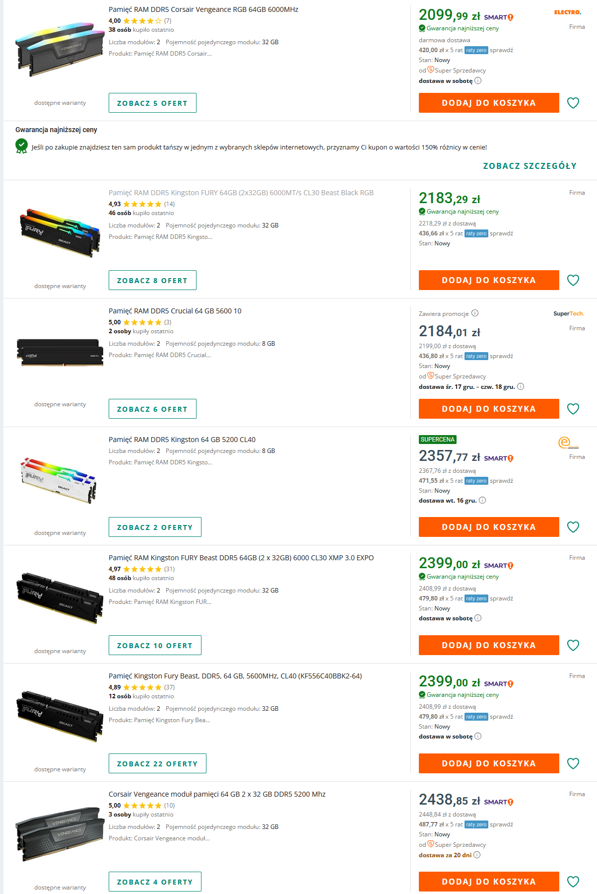 Tutaj za 2100 macie 6000 CL30 z dostawą na jutro