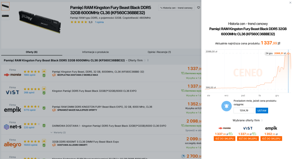 I Kingstony przyszły przed świętami po negocjacjach za 1300. Ramy są i można kupić w normalnej cenie.