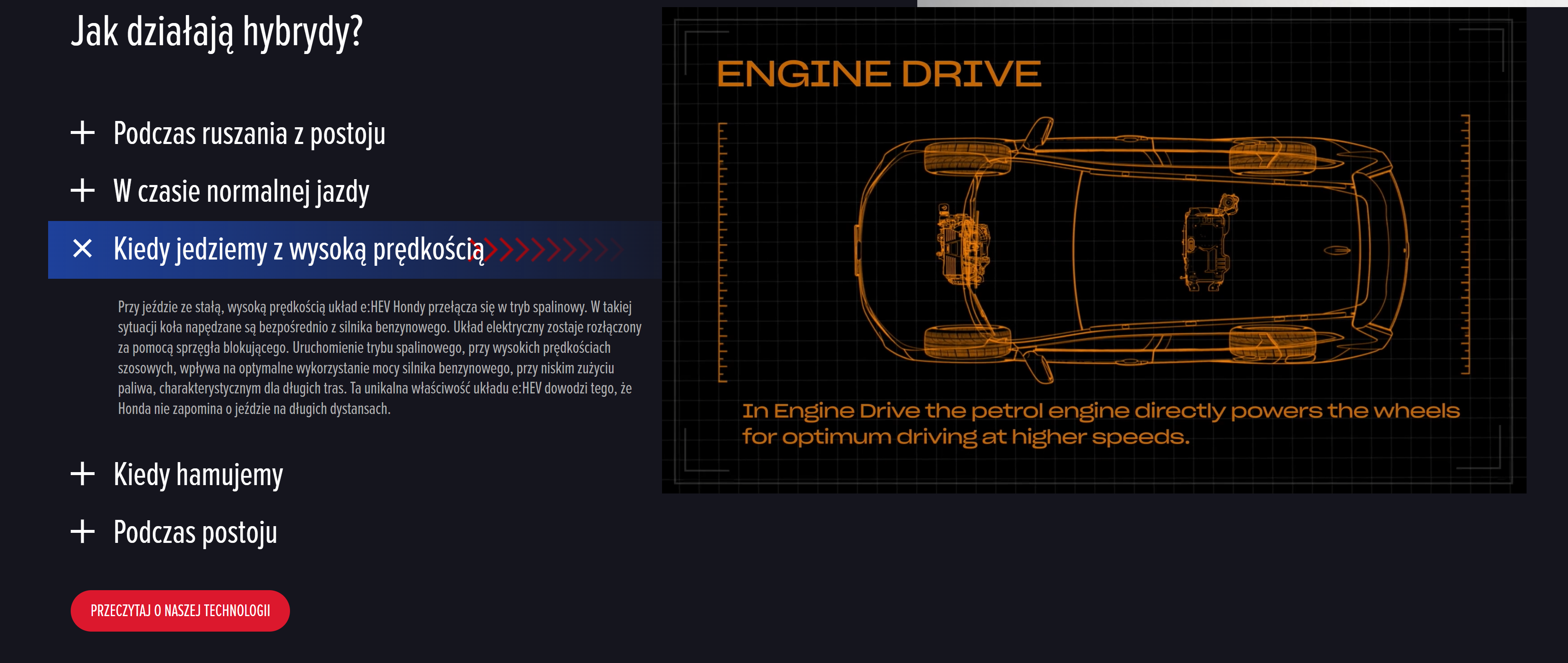 @Tomasz Niechaj tutaj masz opis https://www.samochodyhybrydowe.honda.pl/how#tech, co prawda bez konkretnych wartości ale jednak tryb spalinowy jest dedykowany do wysokich prędkości. Odnośnie obrazka u góry niby wynika że koła napędza spalinówka ale ja tam instrukcji do tego nie czytałem.