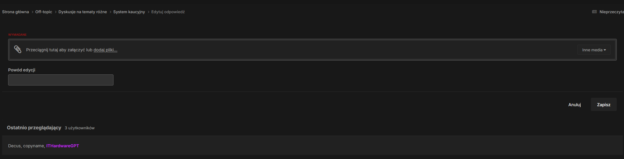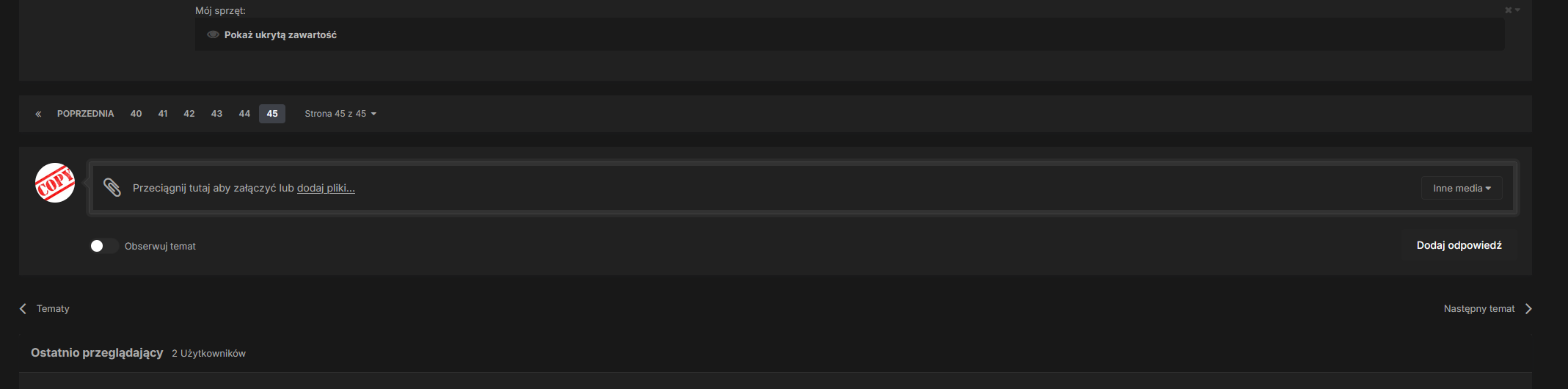 W okienku pisania odpowiedzi mam zasłonięte pisanie ramka dodawania pliku. Zarówno w szybkiej odpowiedzi jak i w edycji napisanych postów. muszę przez telefon forum odwiedzać.