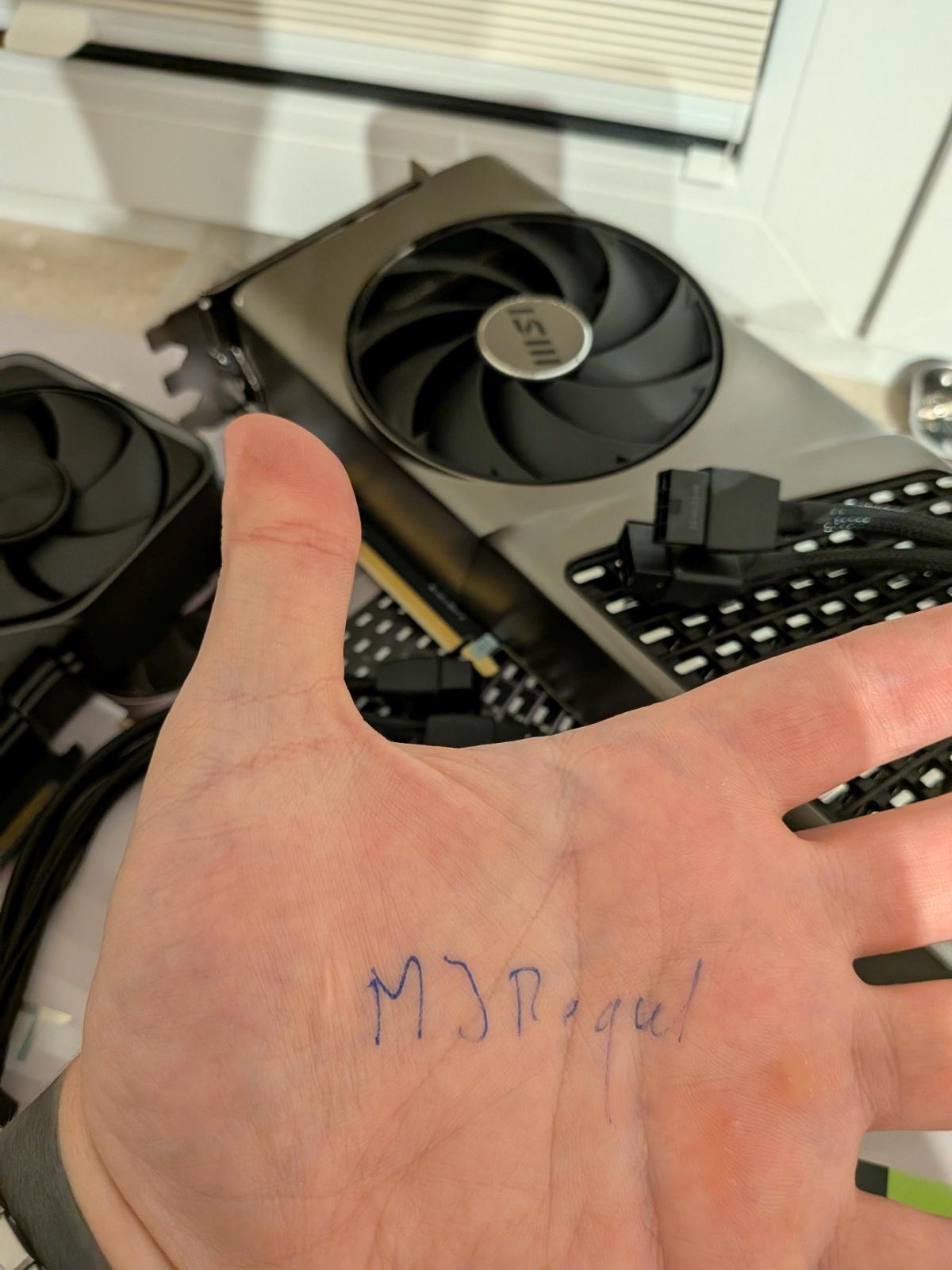 MJRegul 564 Opublikowano 4 godziny temu Opublikowano 4 godziny temu (edytowane) Nadszedł ten moment. Nie będę czekał na niewiadomo co bo mnie parę stówek nie zbawi a się kasa przyda więc na sell idzie moj 4070TiS po roku znajomości. Zostaję z tym strasznym malutkim 5070 FE Pełen zestaw w pudełku z podpórką oprócz 3 zaślepek portów DP/HDMI. Ostał się jeden i osłona złącza PCI-E. Resztę pewnie kot pogryzł. Na obudowie karty bardzo delikatne ryski od wyjmowania/wkladania i ogólnego grzebania w obudowie a to lakierowane amelinium więc o ryski łatwo. Wysyłam przez paczkomat do innego paczkomatu po wpłacie konto/BLIK na nr tel. (20zl KW) lub InPostowym kurierem za pobraniem pod drzwi, nadanie też w paczkomacie (35zl KW). Cena? Powiedzmy startowo 3500 do małego nego? Nowa pasta na rdzeniu - MX4, nałożona pod koniec 2025, stara roczna była sucha jak wiór. Nalepka na śrubce zdjęta delikatnie i naklejona ponownie. Nie podmieniana na zamienniki. Karta absolutnie wyczyszczona z kurzu w środku i na zewnątrz na ile oczy i pędzelki pozwoliły. Fucktura zakupu z 16.02.2025 z Euro RTV w pliku pdf albo mogę wydrukować na papirusie. Edytowane 4 godziny temu przez MJRegul 1 2