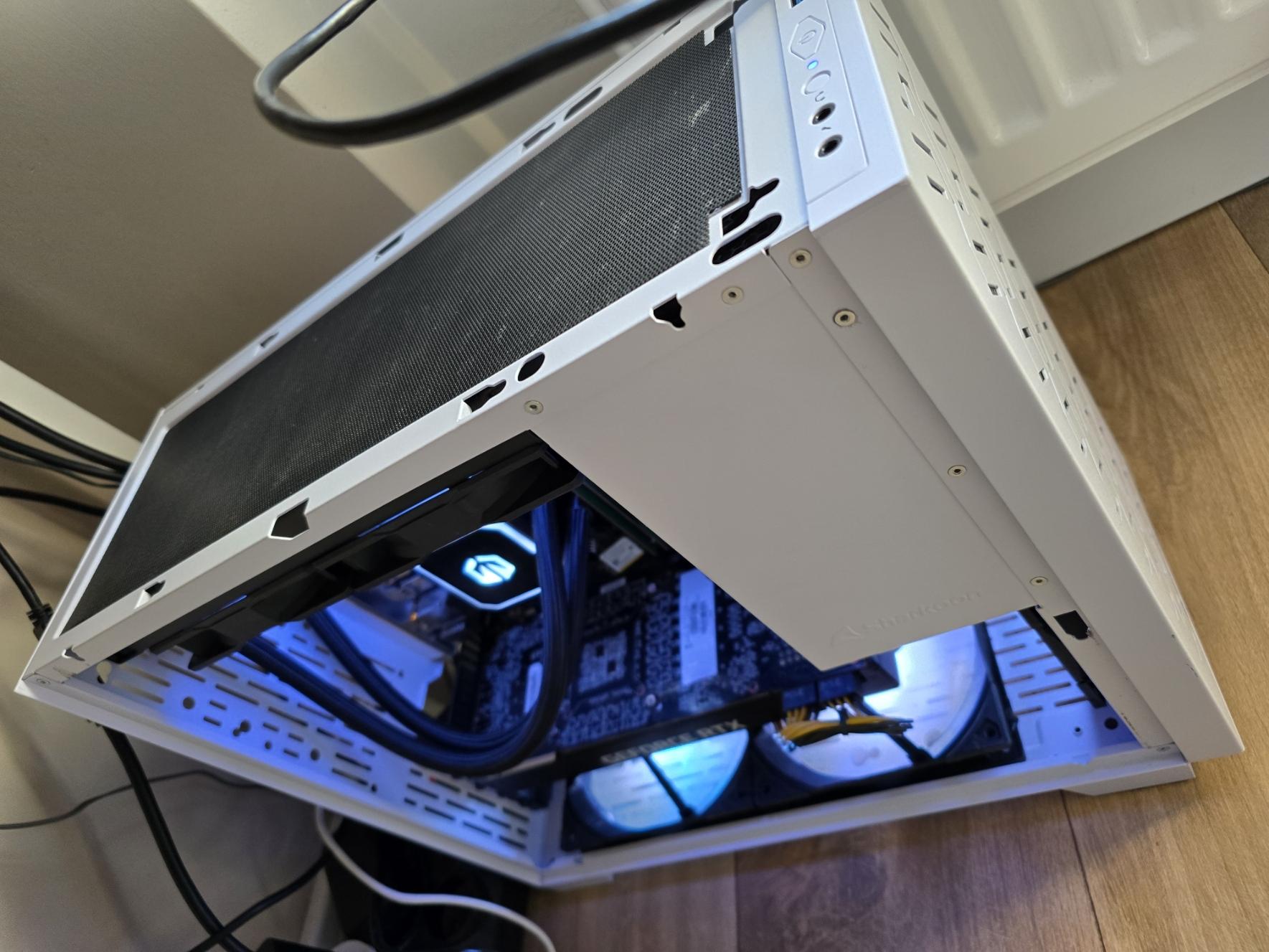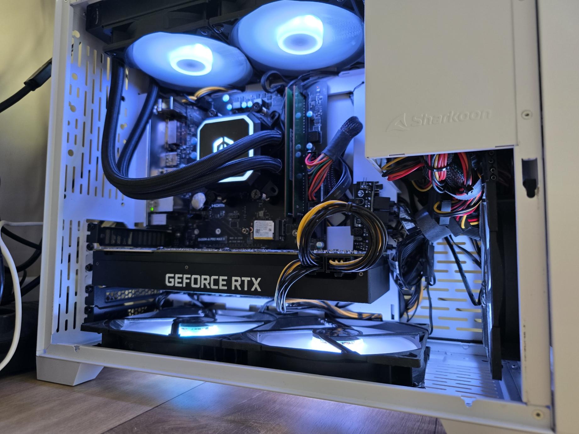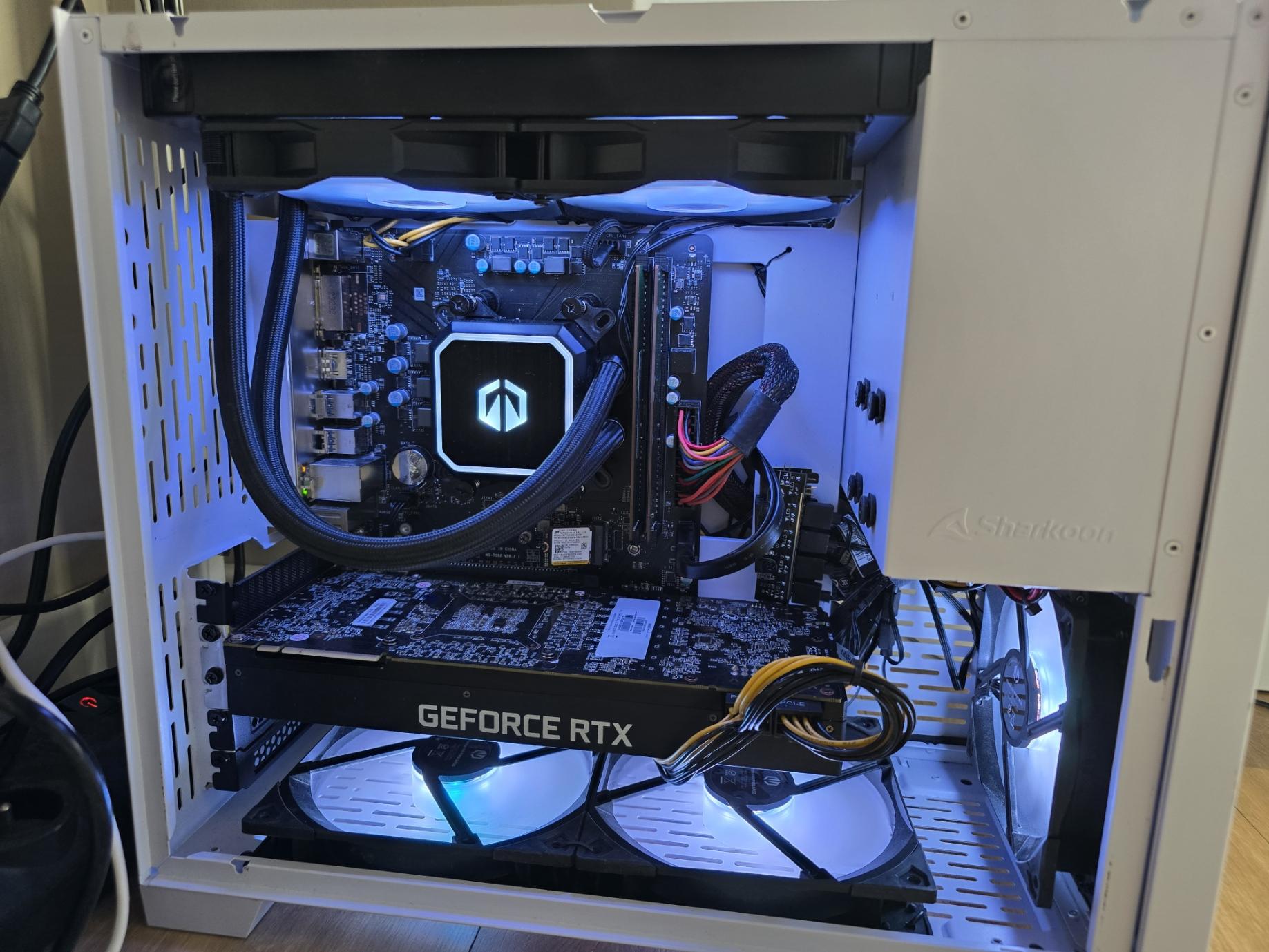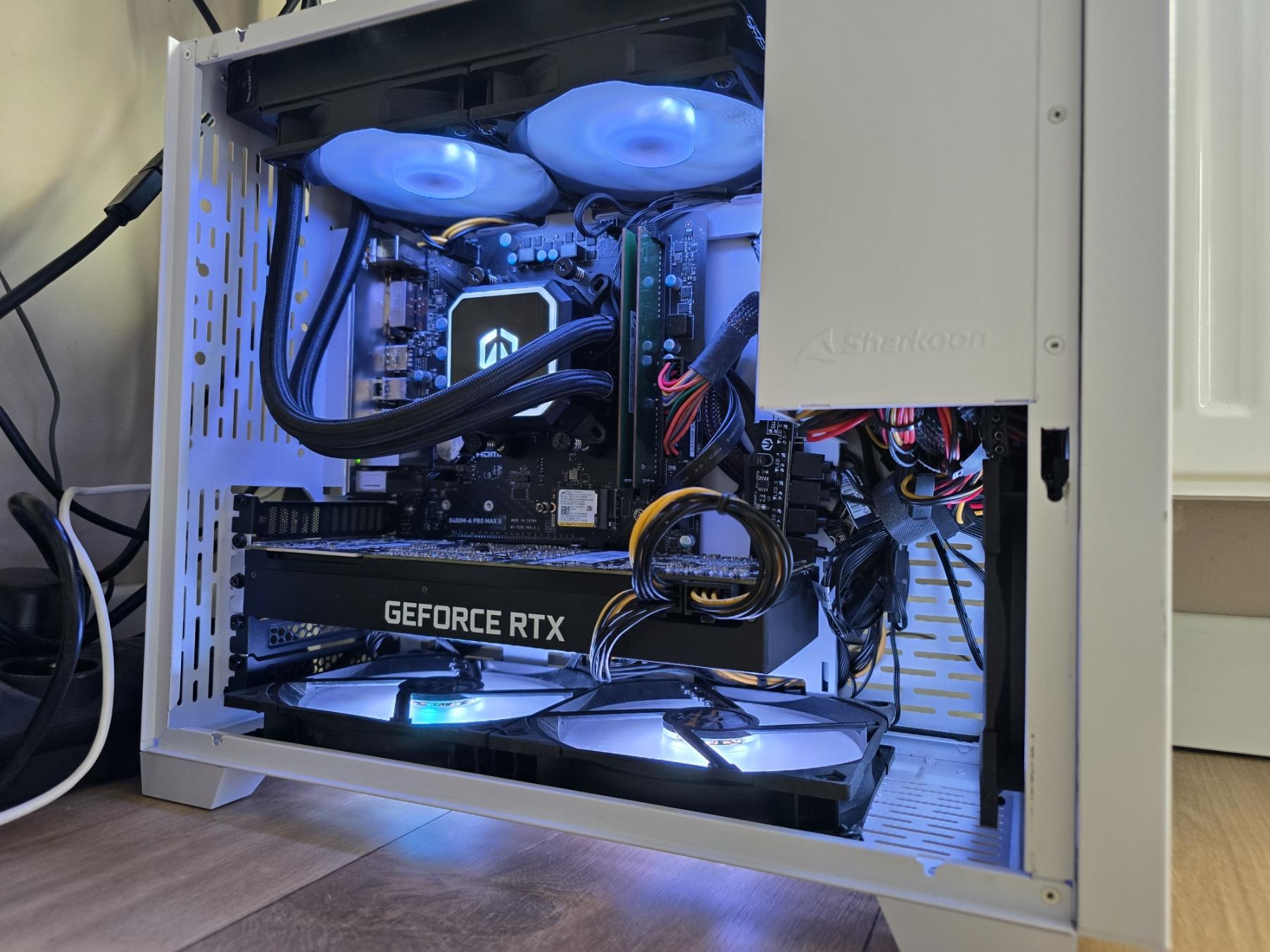 Qrdello 826 Opublikowano 13 Kwietnia Opublikowano 13 Kwietnia Nic specjalnego, odgrzebalem sharkoona, przerzucilem do niego ryza 2700. Mala zgrabna, aczkolwiek pod katem ukladania kabli niewdzieczna obudowa. Natomiast co tutaj ciekawe, to PNY 2080Ti blower, którego dostalem na testy i moze przytulenie od znajomego. Karta po serwisie, fabrycznie bez backplate - i ktos podczas demontazu urwal kilka konsensatorów oraz przerysowal scieżki. Obecnie karta po naprawie, dziala poprawnie pod katem wydajności - teoretycznie nic jej nie jest. Ogólnie jest w stanie średnim, porysowany shroud, widać ząb czasu na śledziu (utlenia się miejscami), ponadto karta przez wzgląd na chlodzenie - pracuje dość glosno, nawet przy 50% obrotów, i jest wyjątkowo ciepla. Rdzeń potrafi dobić do 78C, core 93C. Pastę wymienilem, ale na NC-H1 - nie wiem czy karta zostanie u mnie, szkoda mi PTMa na nią póki co. Niemniej, nawet będąc w takiej kondycji karta pokazuje pazur. Nawet AC Shadows na high preset potrafi spokojnie trzymać 60 klatek w 1080p. W sumie z żadną testowaną przeze mnie grą nie ma z nią problemu. Za takiego blowera trzeba dać okolo 1100-1200zl, zależnie od stanu i miejsca pochodzenia. Kilka fotek (przemilczamy odwróconego NAVISa - tak jest wygodniej z wężami, oraz dysk m.2 - akurat taki krótki mialem :p ) 2