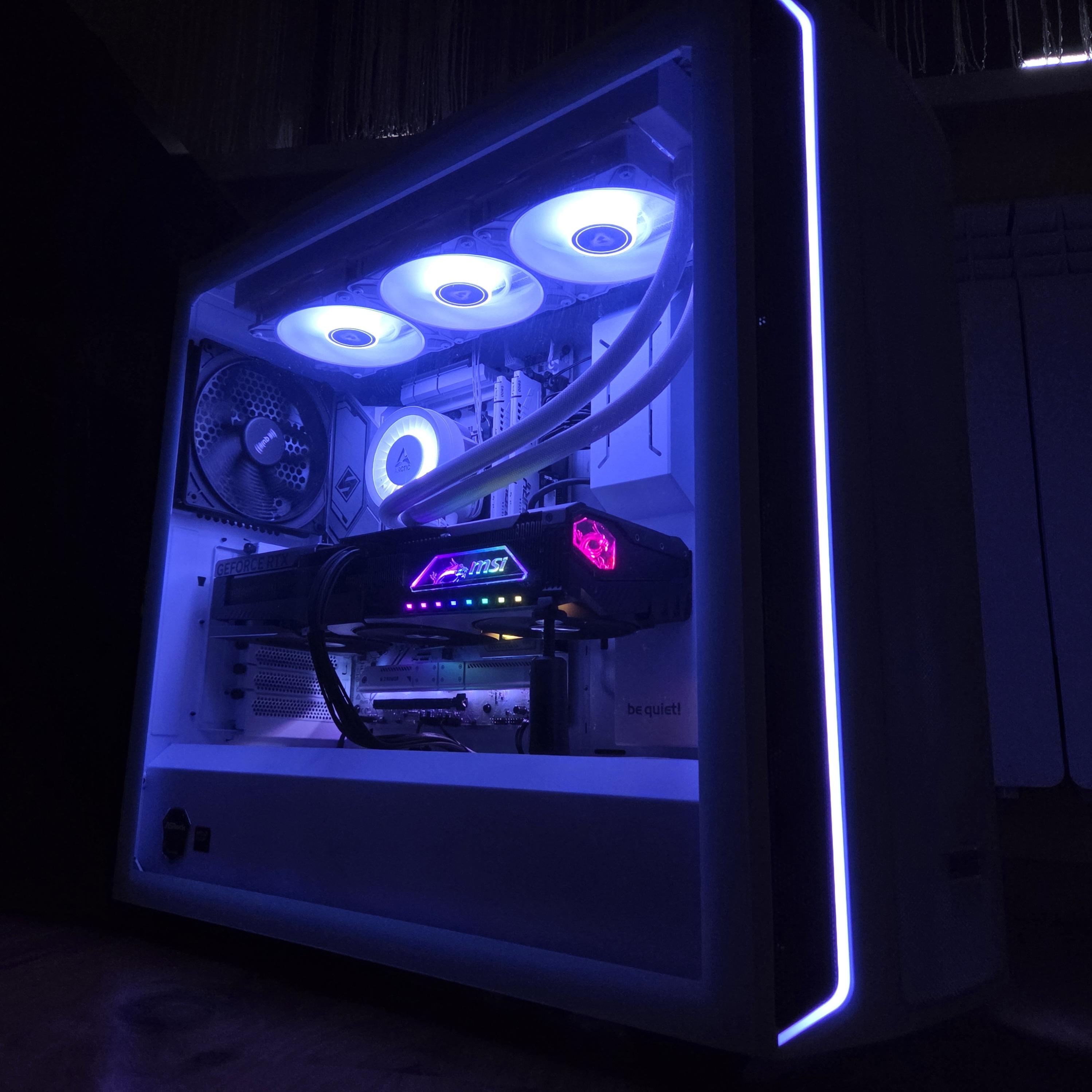 Qrdello 826 Opublikowano 13 Kwietnia Opublikowano 13 Kwietnia 21 minut temu, Kakarotto napisał(a): Generalnie, niektóre świecące konstrukcje są spoko i się mi podobają, ale tylko jak się je na zdjęciach ogląda. Jakbym miał mieć takie łeło łeło na biurku blisko siebie, to bym chyba oszalał. @Pitt_34Twoja na fotach top, niebieski kolor plus ekranik i napis na karcie dają niezły kontrast. Tak żeby było wszystko jasne (hehe), obecnie to wygląda tak: A tak bez latarki: Zielone i czerwone światełka nie są w obudowie, jedynie światło daje monitor na biurku, stąd napisy wydają są takie widoczne. Te dwa na dole mają odwrócony ciąg? Bo trochę bezcelowe są, jeżeli wieją normalnie