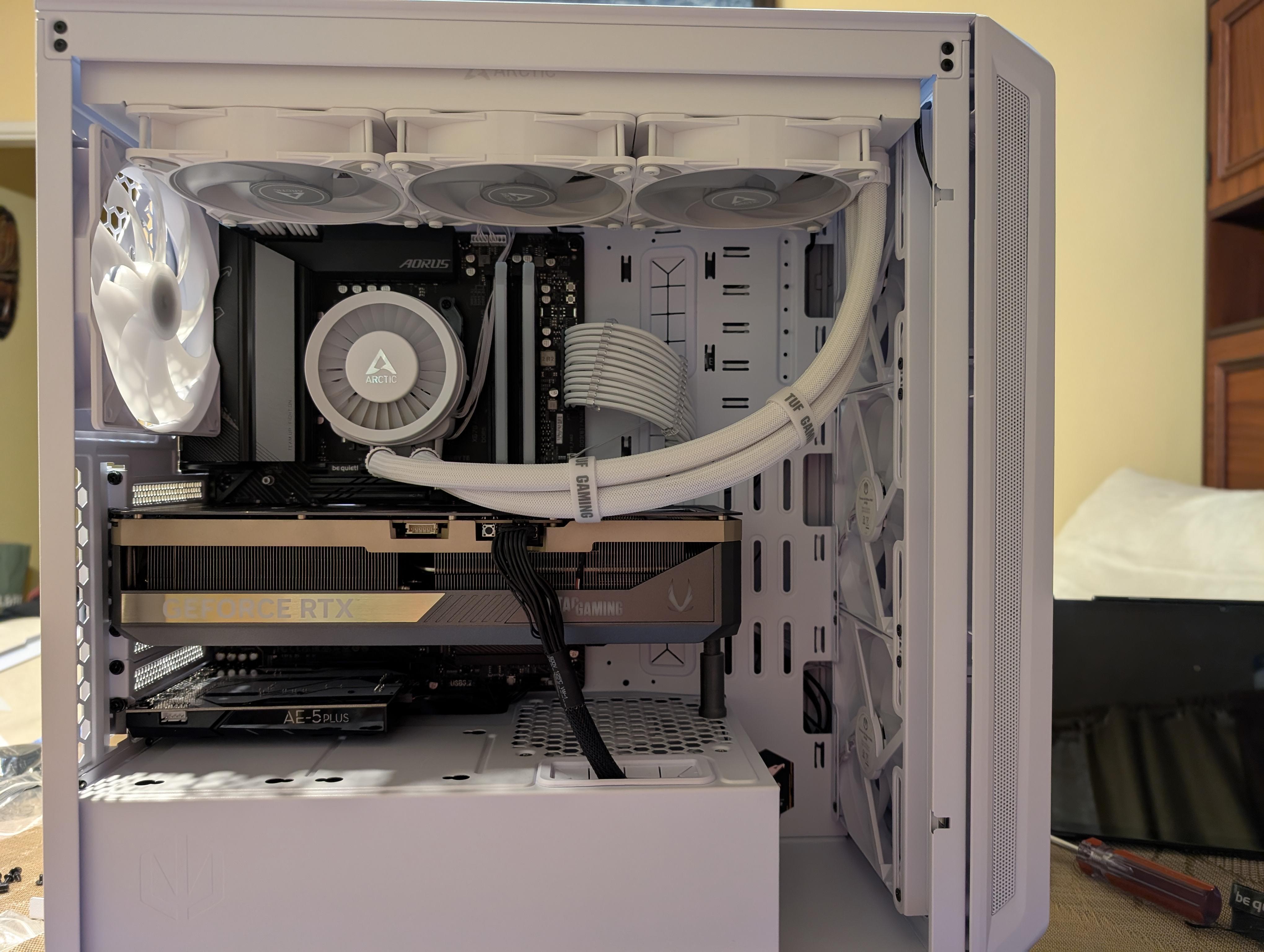 Dziś widzę wątek nt temperatur to pochwalę się zmianami. SFF mnie nie zadowoliło w kwesti temperatur więc dziś wleciała nowa buda na grubo. Śmiesznie mini ITX wygląda w tej budzie ale kultura pracy wentylatorów i navisa to jest coś pięknego. Teraz rozmiar gpu nie będzie mnie ograniczał jak wcześniej więc może jakieś zmiany nadejdą 😎