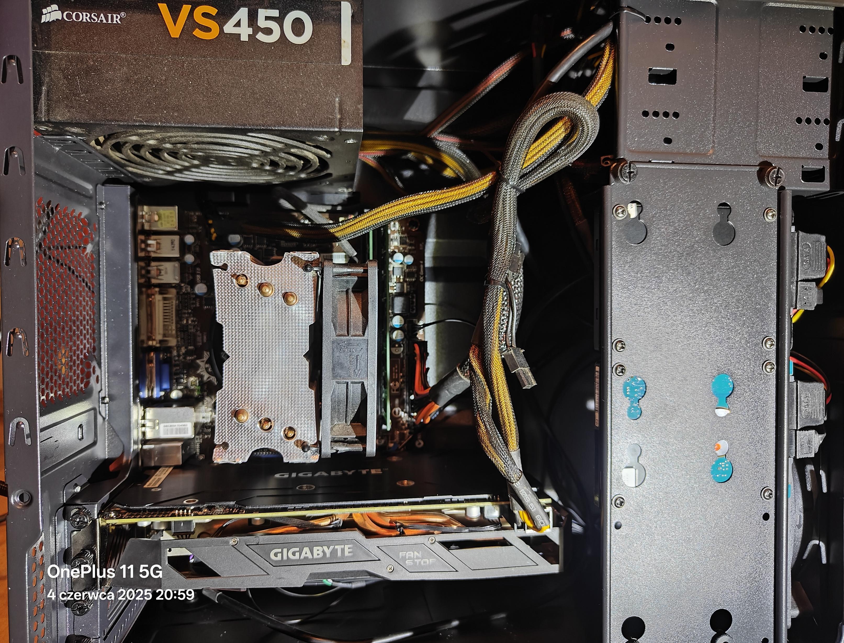 Mój mały bydlaczek, złożony z gratów znalezionych w garażu i głównie jedną ręką. Nie najładniejszy, nie najwydajniejszy, nie najlepsze ułożenie kabli, ale poskładany samodzielnie. :smiech: