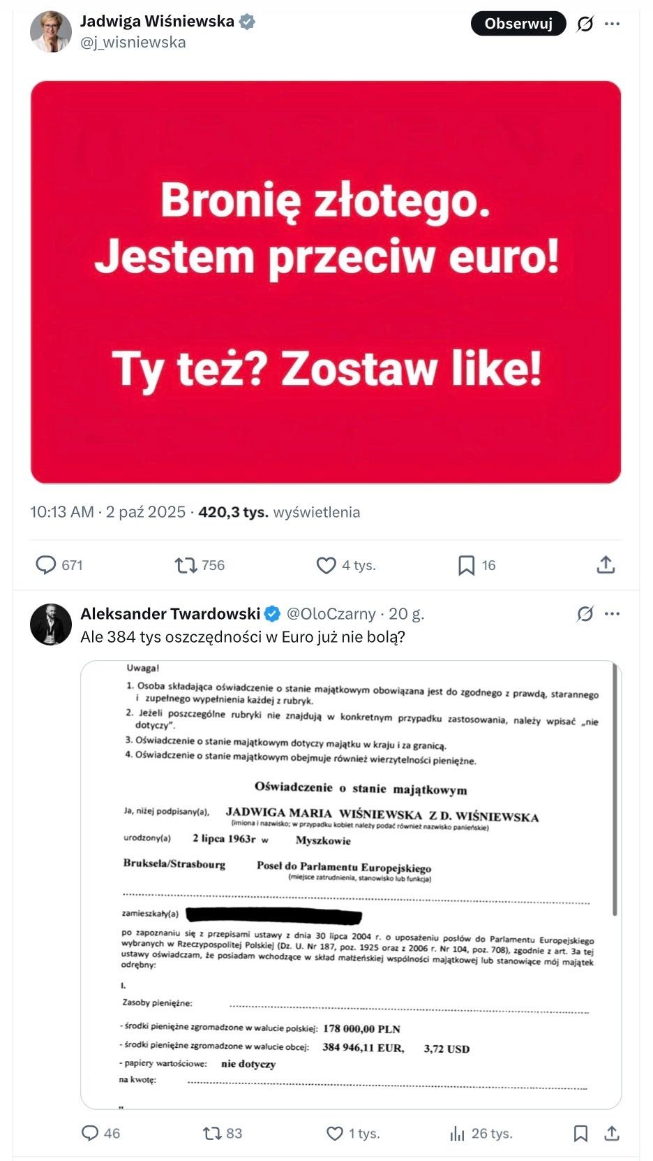 A co niby bycie przeciwko wprowadzeniu euro ma w ogóle wspólnego z posiadaniem oszczędności w obcej walucie?
