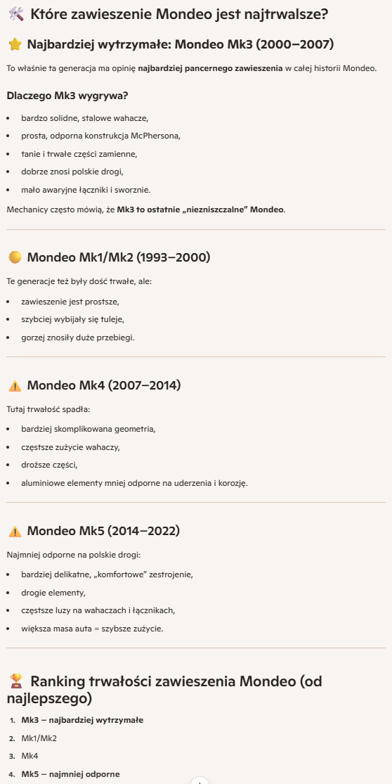 O to chodzi - dlatego porównanie 10-15 letniego Mondeo wprost z 3-miesięcznym samochodem nie ma za bardzo sensu.