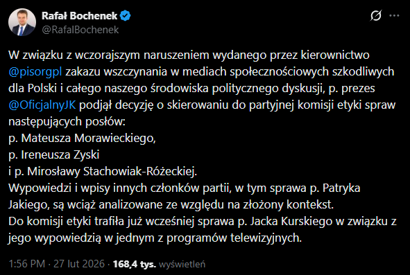 adashi 1 666 Opublikowano 1 godzinę temu Opublikowano 1 godzinę temu 34 minuty temu, Camis napisał(a): Zobaczymy, rząd twierdzi że będzie pożyczka z SAFE. Że "klasa polityczna" przebiera nóżkami to mnie po casusie jachtów z KPO nie dziwi. Na odrzucenie veta nie zbiorą. Bez ustawy to ciekawe kto będzie zarządzał tymi środkami (gdzie mają pójść i kiedy zostać pobrane) i kto będzie podpisywał zobowiązania w imieniu polskiego państwa oraz na jakiej podstawie. Wykonajmy szacunkowy rachunek, podobno polski rząd ma apetyt na kwotę typu 190 miliardów złotych. W roku 2030 nie mam pojęcia ilu będzie pracujących Polaków, myślę że przyjęcie 21 milionów ma sens. To daje do spłaty około 9000 zł na każdego pracującego Polaka. A jeśli to nie pójdzie na inwestycje w krajowy przemysł, tylko na zakupy z półek obojętnie czy europejskich czy amerykańskich, to czysty kapitał do spłacenia.