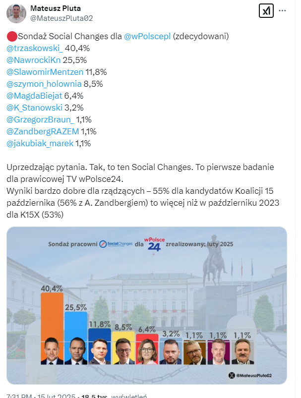 Obecne sondaże dotyczą pierwszej tury. W drugiej Nawrocki dostanie dodatkowo głosy wybroców innych kandydatów konserwatywnych.