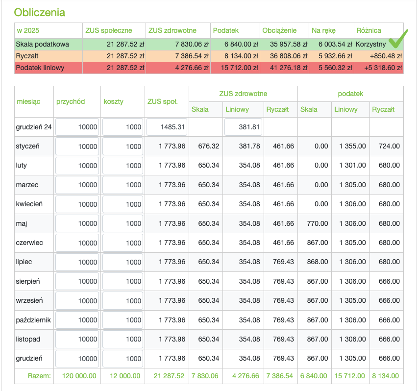 No i dodatkowo nie odliczasz kosztów, które tam są odliczone, ale daje to generalny obraz sytuacji :)