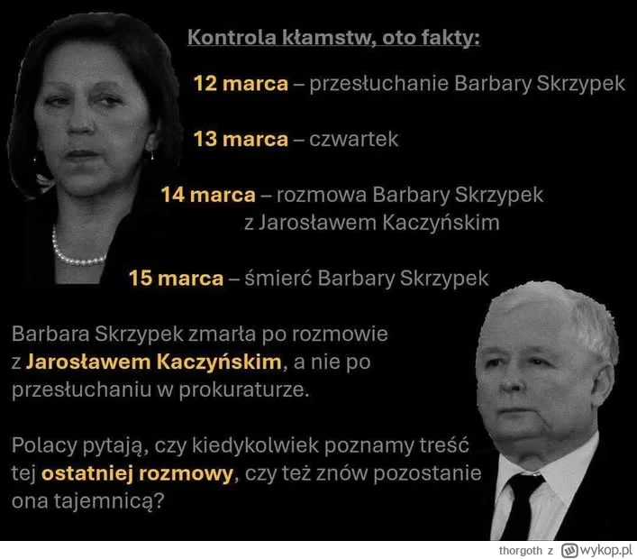 Dziwię się KO że nie grillują Kaczyńskiego o to, że to po rozmowie z nim babka się przekręciła - modus operandi zbliżone do tego co spotkało gumowego Gowina, tyle, że ten jakimś cudem przeżył.