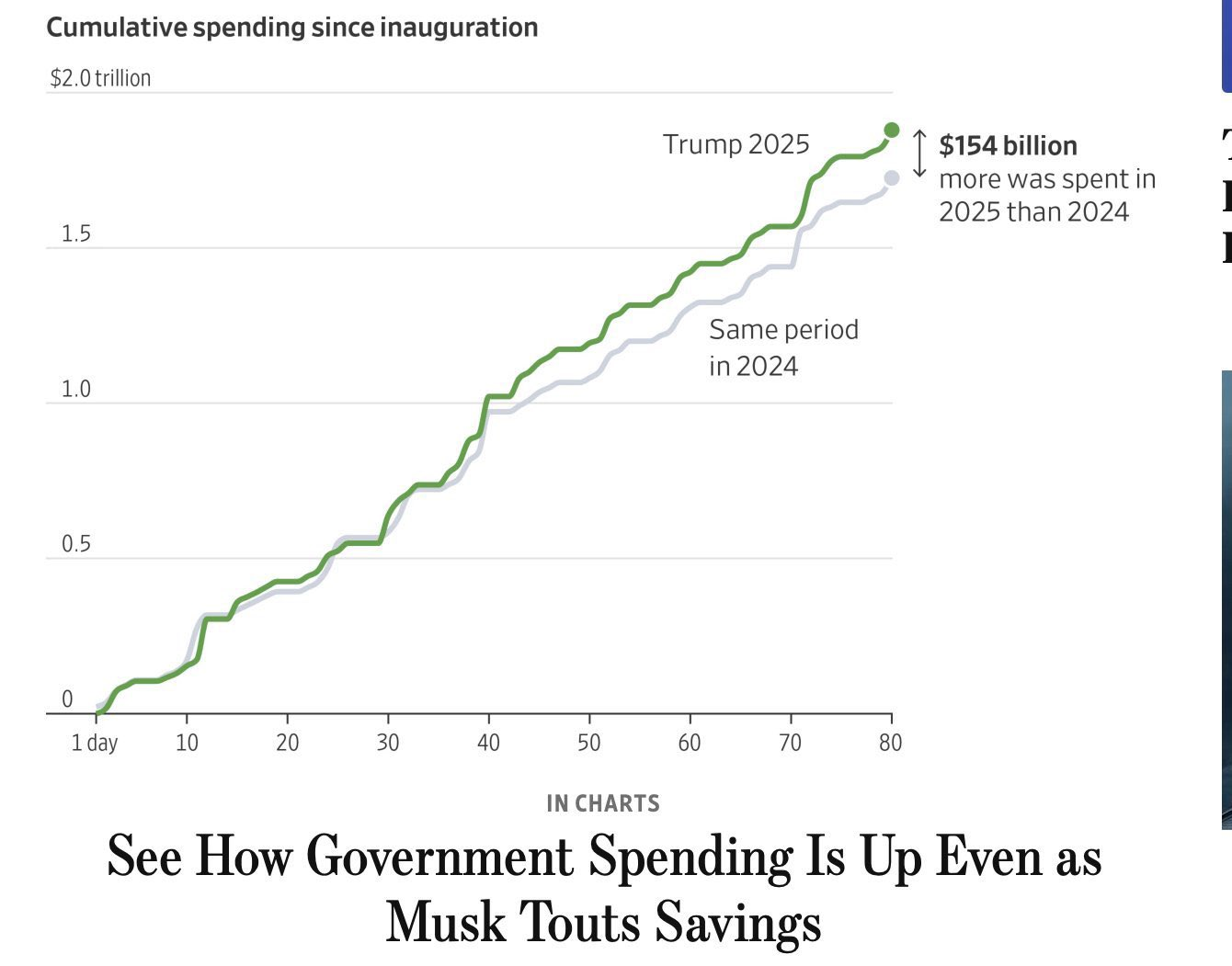 No tak, 92 mld $ zaoszczędzone, w tym część z wątpliwościami, ale za to przynajmniej zniknęły posiłki dla potrzebujących w Stanach jak i w Afryce oraz oczyszczono środowisko z demokratów robiąc chaos w administracji, bo teraz pracownicy nawet mają problem ze składaniem pdf jak pozabierali im licencje na soft.