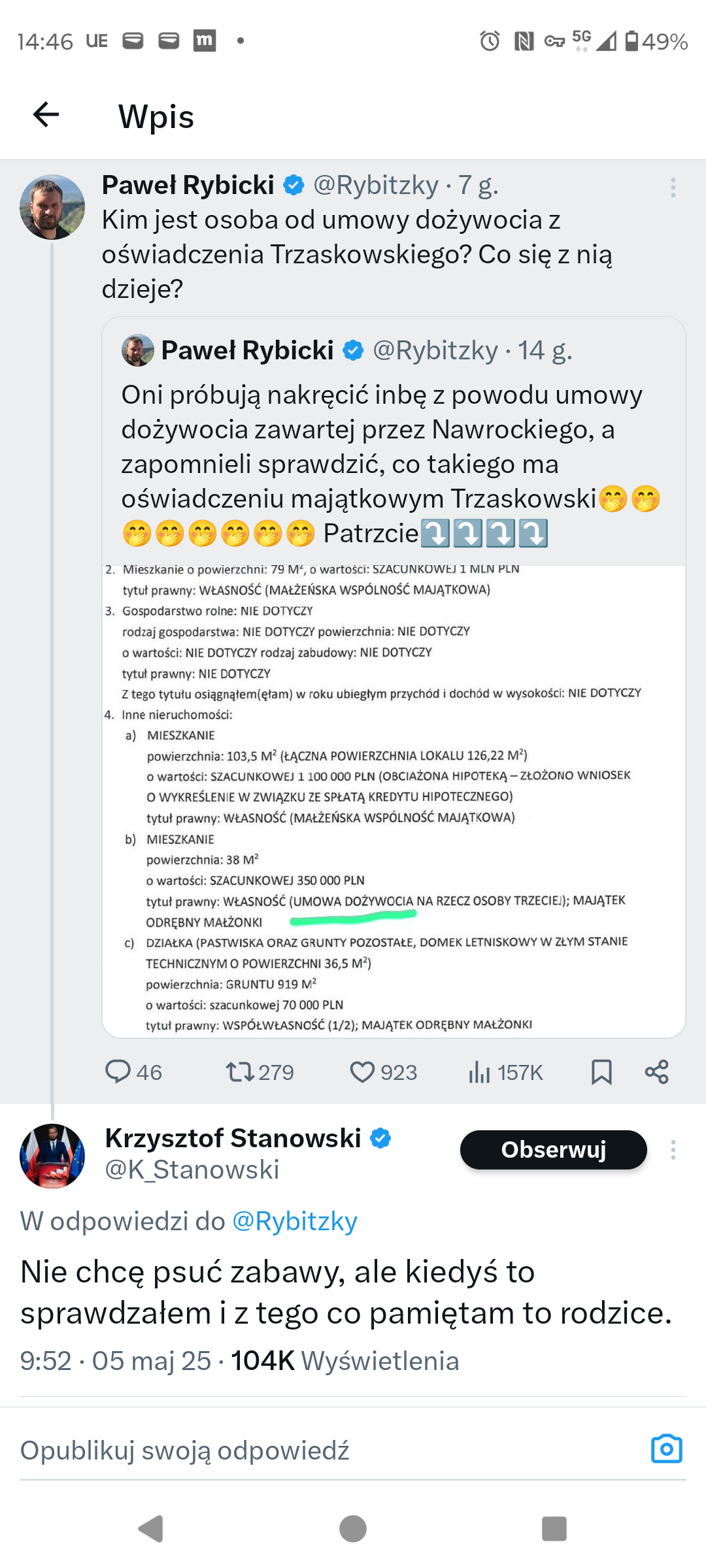 A jeszcze Banaś ze swoją świtą z NIK przeprowadzają teraz kontrolę w IPN. Ciekawe co tam wyjdzie z tej kontroli, tylko szkoda, że raport będzie po wyborach. To mogłoby ostatecznie pogrążyć Nawrockiego, skoro kontakty z gangsterami, szemrane kontakty towarzyskie z kobietami, apartament czy ostatnio z drugim "tajnym" mieszkaniem, w którym przebywał pewien dziadek, którym miał się zajmować Nawrocki to za mało. Nie wspominając jak ten Nawrocki jest drewniany i sztuczny. Duda to przynajmniej umie drzeć mordę wzdłuż i wszerz.