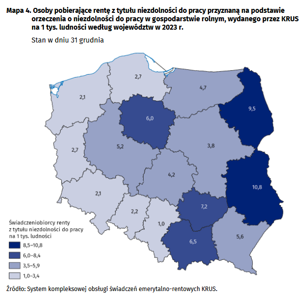 Sorry ale ta grafika pokazuje tylko, że na wschodzie jest więcej małych rolników. A niezdolność do pracy w rolnictwie jest często. Wielu rolników nie ma palca, dłoni lub kręgosłup im padł od je** fizycznego od zmierzchu do świtu.