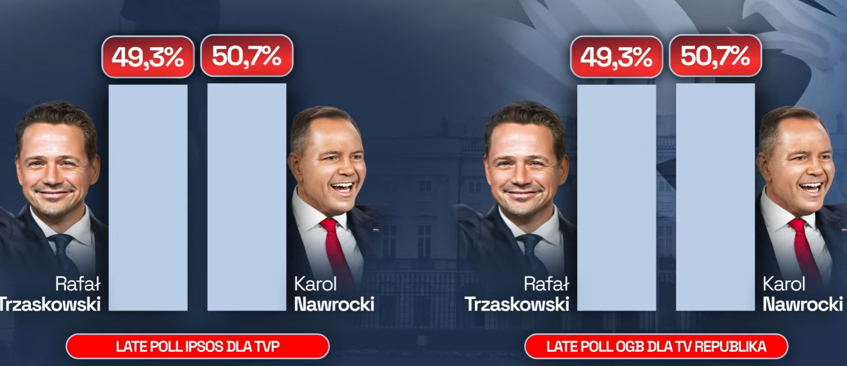 Element Wojny 4 775 Opublikowano 1 Czerwca Opublikowano 1 Czerwca (edytowane) Late poll 50,7 dla Nawrockiego???? IPSOS i OGB to samo podaje. Edytowane 1 Czerwca przez Element Wojny 1