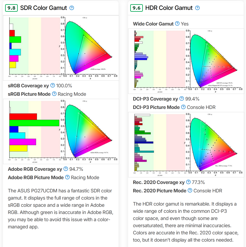 Tldr; HDR wysokie 2%, 10% gorzej od starych, realne sceny tak samo (czasami minimalnie lepiej/gorzej), czcionka min. lepiej, konkurencyjna z QD (HU dalej preferuje QD).